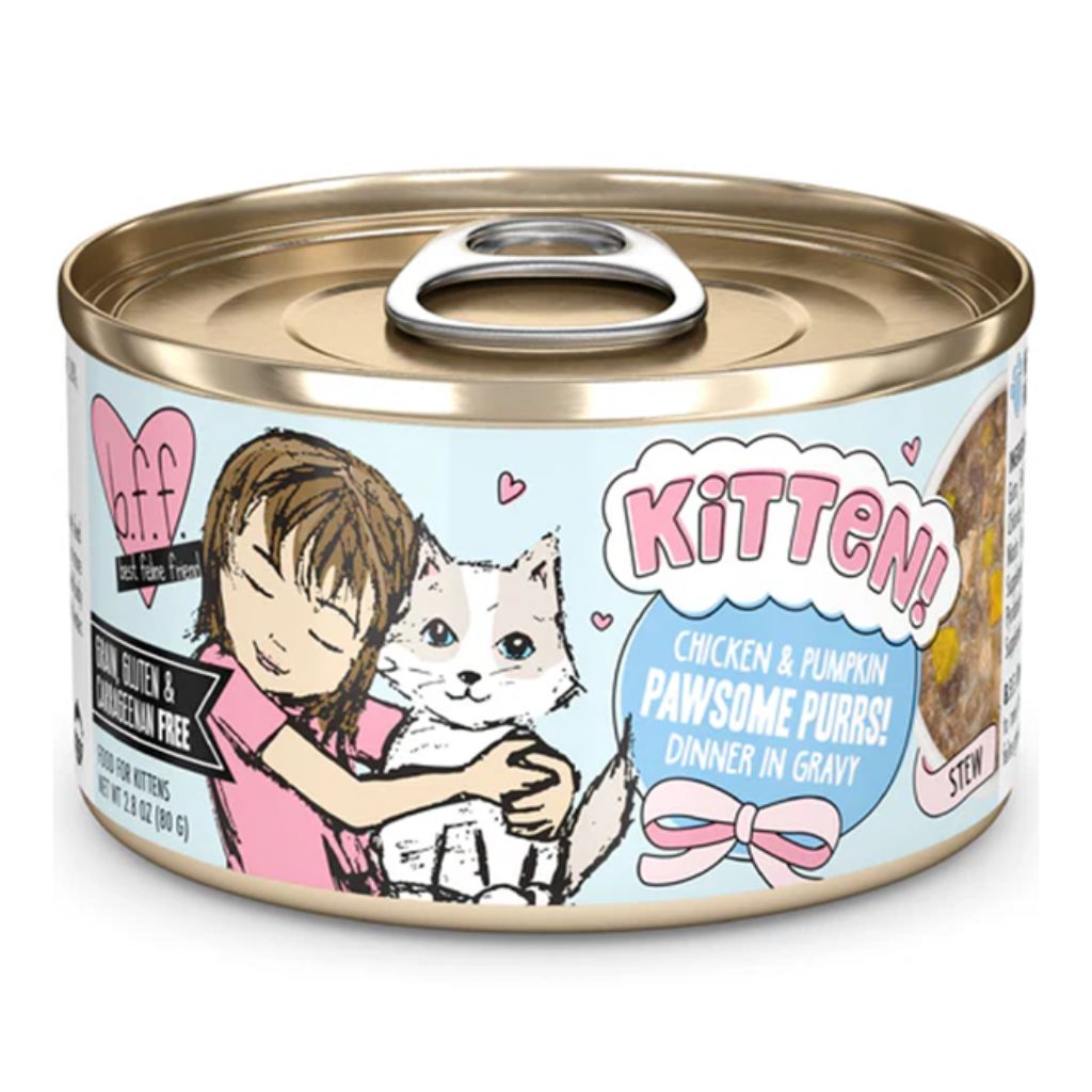 Give your kitten the purr-fect start with Best Feline Friend's Kitten Pawsome Purrs! Featuring cage-free chicken and pumpkin, this all-natural recipe is specially formulated for growing kittens. Free from grain, gluten, and carrageenan, it offers top-notch nutrition for your furry purr machine. Kittens fluffin' LOVE IT!