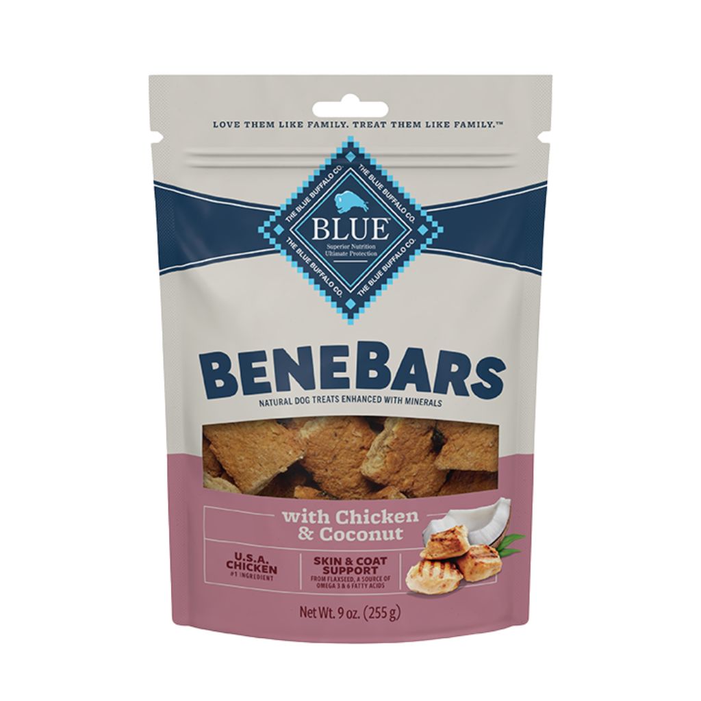 Delicious, soft-baked BLUE BeneBars contain Omega 3 & 6 fatty acids to support skin and coat health in dogs. They are made with real chicken first, plus coconut for a hardworking reward that’s sure to delight.