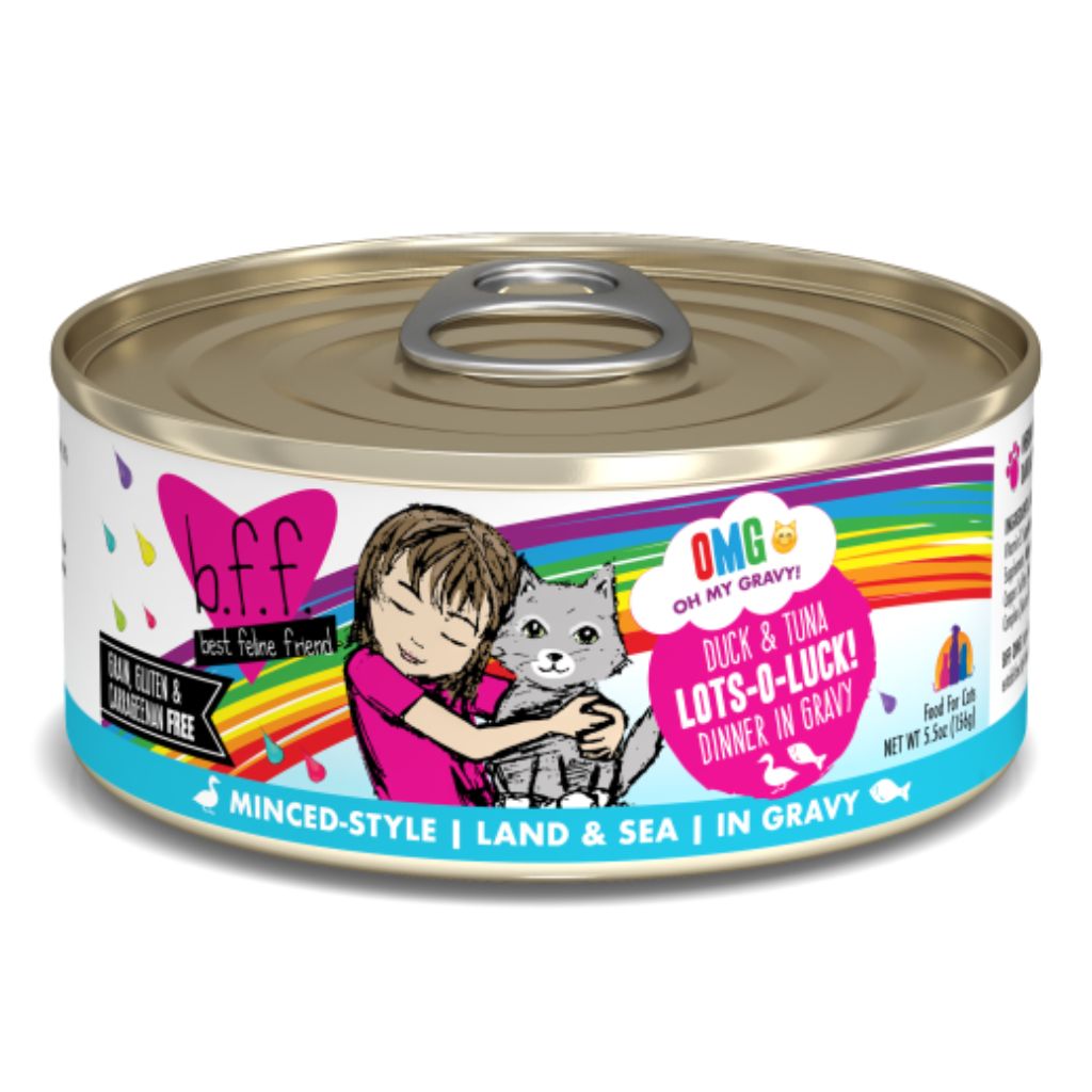 OMG! Even more gravy and land-based animal protein? Oh My Gravy offers your B.F.F. happy hydration with a delectable, tasty gravy. With healthy fats and minimal carbs, this high-protein meal of minced duck and tuna will make your kitty's taste buds jump for joy! Who needs luck when your purr machine loves this delicious dinner?