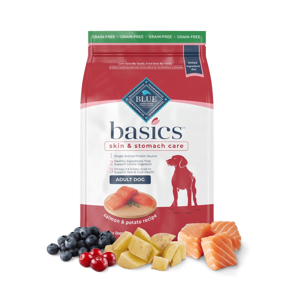 BLUE Basics Grain-Free Salmon Recipe is a limited-ingredient diet formulated to minimize food sensitivities some dogs experience, while maximizing the nutritional value they receive. And because it's BLUE, it's made with only the finest natural ingredients such as tasty, protein-rich, deboned Salmon. Potatoes are also used for an easily-digestible carbohydrate source. For dogs that show signs of being sensitive to some of the ingredients used in traditional pet foods, less may be more. BLUE Basics is made without corn, wheat, dairy, soy or eggs and is 100% grain and gluten-free.