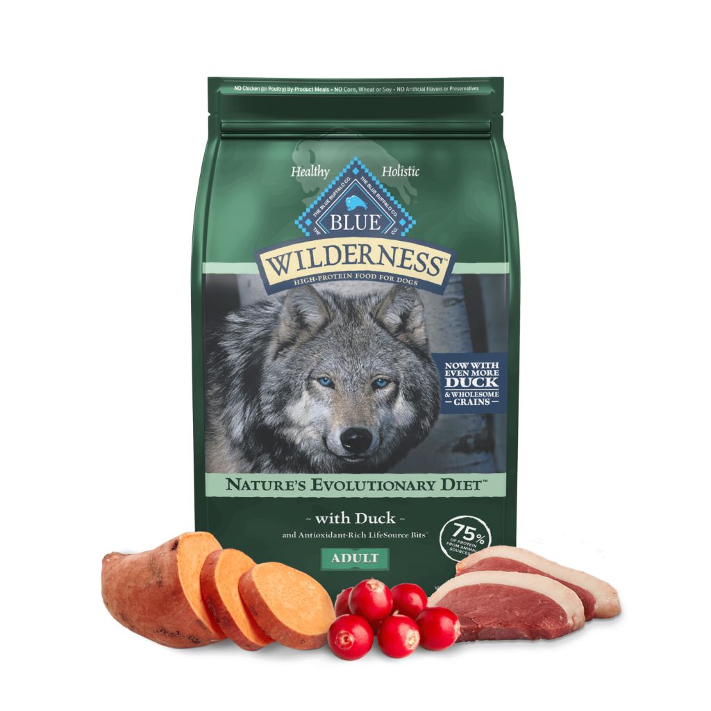 Deboned Duck, Chicken Meal (source of Glucosamine), Tapioca Starch, Peas, Turkey Meal, Pea Protein, Tomato Pomace (source of Lycopene), Chicken Fat (preserved with Mixed Tocopherols), Dried Egg, Flaxseed (source of Omega 3 and 6 Fatty Acids), Natural Flavor, Potatoes, Alfalfa Meal, Dicalcium Phosphate, Potato Starch, Dried Chicory Root, DL-Methionine, Calcium Carbonate, Salt, Caramel, Choline Chloride, Potassium Chloride, Mixed Tocopherols (a natural preservative), Sweet Potatoes, Carrots, Vitamin E Supplement, Ferrous Sulfate, Iron Amino Acid Chelate, Zinc Amino Acid Chelate, Zinc Sulfate, Yucca Schidigera Extract, Oil of Rosemary, L-Lysine, Parsley, Kelp, Blueberries, Cranberries, Apples, Spinach, Blackberries, Pomegranate, Pumpkin, Barley Grass, Turmeric, L-Ascorbyl-2-Polyphosphate (source of Vitamin C), Copper Sulfate, Copper Amino Acid Chelate, Nicotinic Acid (Vitamin B3), Taurine, Calcium Pantothenate (Vitamin B5), Biotin (Vitamin B7), Manganese Sulfate, Vitamin A Supplement, Manganese Amino Acid Chelate, L-Carnitine, Thiamine Mononitrate (Vitamin B1), Riboflavin (Vitamin B2), Vitamin D3 Supplement, Vitamin B12 Supplement, Pyridoxine Hydrochloride (Vitamin B6), Beta Carotene, Dried Yeast, Dried Enterococcus faecium fermentation product, Dried Lactobacillus acidophilus fermentation product, Dried Aspergillus niger fermentation extract, Dried Trichoderma longibrachiatum fermentation extract, Dried Bacillus subtilis fermentation extract, Folic Acid (Vitamin B9), Calcium Iodate, Sodium Selenite.