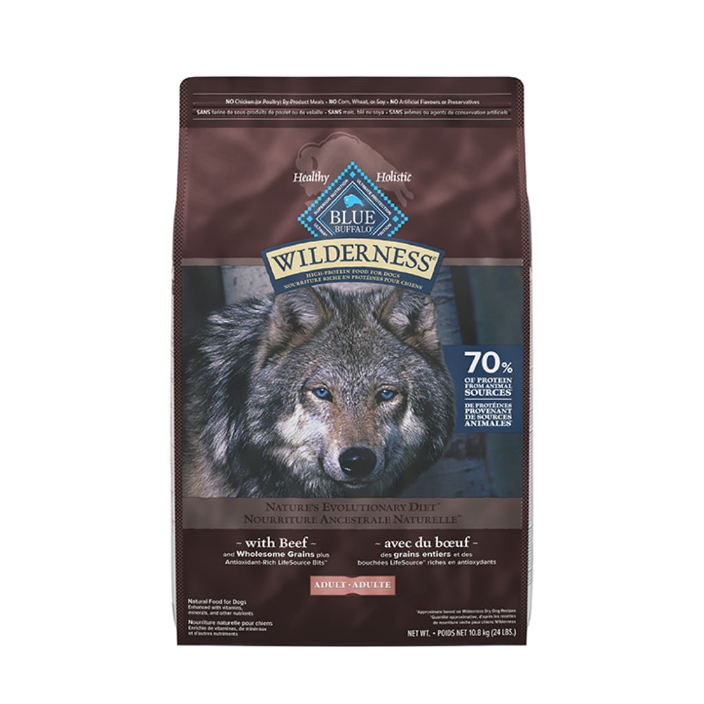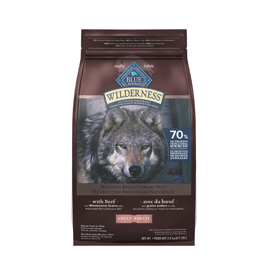 Premium, high-protein BLUE Wilderness is the protein-rich food your dog was born to love. This food starts with the delicious beef your dog desires and contains wholesome grains for an optimally balanced blend of protein, fat, & complex carbohydrates. Formulated specifically for adult dogs, this food is made with high-quality deboned chicken to support the development of strong, lean, healthy muscles. It is enhanced with exclusive LifeSource Bits, made with antioxidants, vitamins, & minerals and "cold-formed" to retain their potency. Love them like family. Feed them like family.