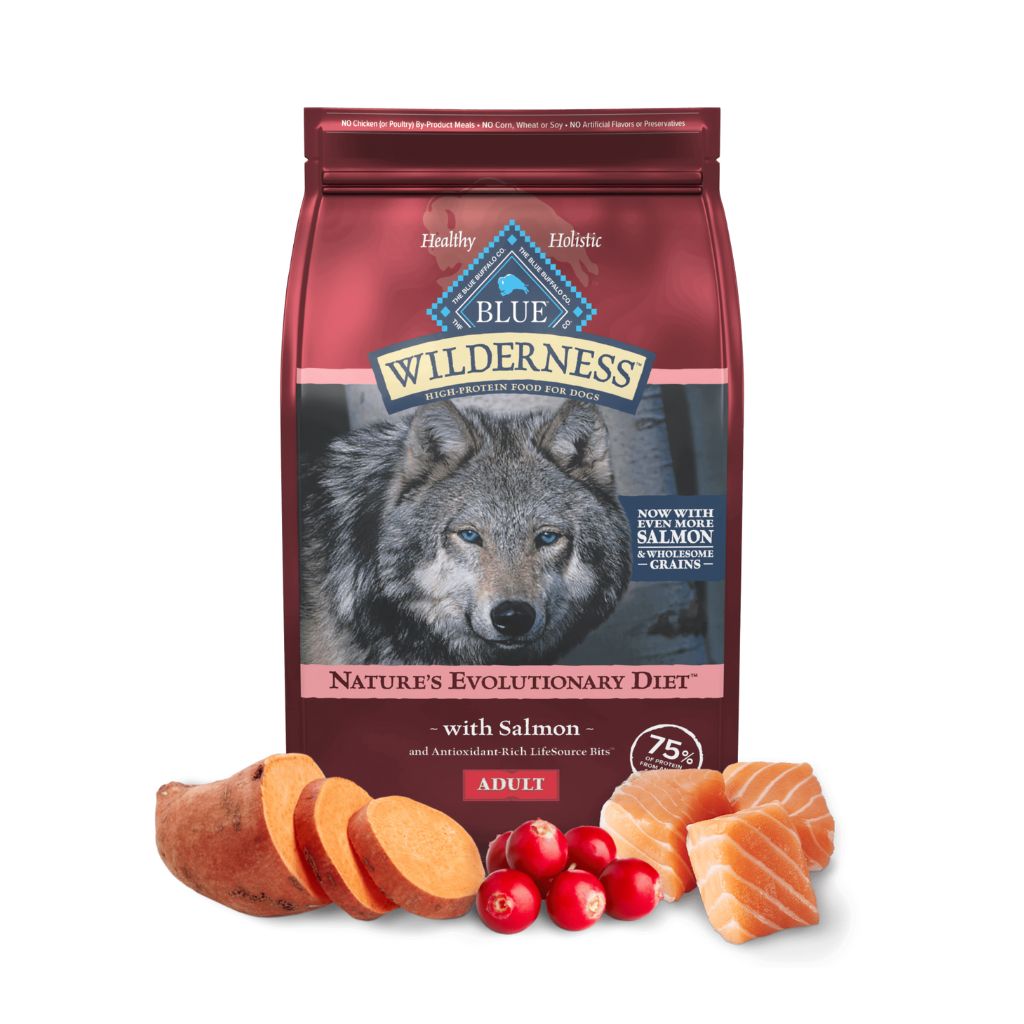 Deboned Salmon, Menhaden Fish Meal (source of Omega 3 Fatty Acids), Chicken Meal (source of Glucosamine), Dried Chicken Oatmeal, Barley, Potatoes, Dried Tomato Pomace, Dried Egg Product, Chicken Fat (preserved with Mixed Tocopherols), Natural Flavour, Sweet Potatoes, Peas, Pea Protein, Potato Starch, Flaxseed (source of Omega 6 Fatty Acids), Dehydrated Alfalfa Meal, Salt, L-Threonine, DL-Methionine, Potassium Chloride, Calcium Carbonate, Dried Chicory Root, Pea Fibre, Alfalfa Nutrient Concentrate preserved with Mixed Tocopherols, Choline Chloride, Carrots, Zinc Amino Acid Chelate, Zinc Sulfate, Vegetable Juice for colour, Ferrous Sulfate, Vitamin E Supplement, Iron Amino Acid Chelate, Blueberries, Cranberries, Barley Grass, Parsley, Turmeric, Dried Kelp, Yucca Schidigera Extract, Niacin (Vitamin B3), Calcium Pantothenate (Vitamin B5), Copper Sulfate, Biotin (Vitamin B7), L-Ascorbyl-2-Polyphosphate (source of Vitamin C), L-Lysine, Vitamin A Supplement, Copper Amino Acid Chelate, Manganese Sulfate, Manganese Amino Acid Chelate, Taurine, Thiamine Mononitrate (Vitamin B1), Riboflavin (Vitamin B2), Vitamin D3 Supplement, Vitamin B12 Supplement, Pyridoxine Hydrochloride (Vitamin B6), Calcium Iodate, Dried Yeast, Dried Enterococcus faecium fermentation product, Dried Lactobacillus acidophilus fermentation product, Dried Aspergillus niger fermentation extract, Dried Trichoderma longibrachiatum fermentation extract, Dried Bacillus subtilis fermentation extract, Folic Acid (Vitamin B9), Sodium Selenite, Oil of Rosemary.
