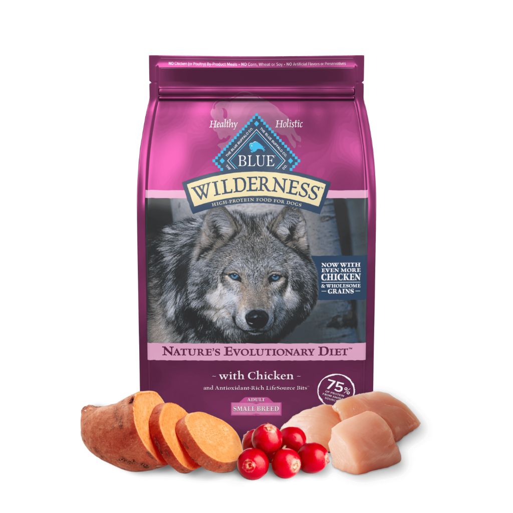 Deboned Chicken, Dried Chicken, Chicken Meal (source of Glucosamine), Oatmeal, Barley, Dried Tomato Pomace, Dried Egg Product, Natural Flavour, Chicken Fat (preserved with Mixed Tocopherols), Peas, Pea Protein, Menhaden Fish Meal (source of Omega 3 Fatty Acids), Flaxseed (source of Omega 6 Fatty Acids), Salt, Dehydrated Alfalfa Meal, L-Threonine, DL-Methionine, Potassium Chloride, Potatoes, Calcium Carbonate, Dried Chicory Root, Pea Fibre, Alfalfa Nutrient Concentrate, Choline Chloride, preserved with Mixed Tocopherols, Sweet Potatoes, Carrots, Dicalcium Phosphate, Zinc Amino Acid Chelate, Zinc Sulfate, Vegetable Juice for colour, Ferrous Sulfate, Vitamin E Supplement, Iron Amino Acid Chelate, Blueberries, Cranberries, Barley Grass, Parsley, Turmeric, Dried Kelp, Yucca Schidigera Extract, Niacin (Vitamin B3), Calcium Pantothenate (Vitamin B5), Copper Sulfate, Biotin (Vitamin B7), L-Ascorbyl-2-Polyphosphate (source of Vitamin C), L-Lysine, Vitamin A Supplement, Copper Amino Acid Chelate, Manganese Sulfate, Manganese Amino Acid Chelate, Taurine, Thiamine Mononitrate (Vitamin B1), Riboflavin (Vitamin B2), Vitamin D3 Supplement, Vitamin B12 Supplement, Pyridoxine Hydrochloride (Vitamin B6), Calcium Iodate, Dried Yeast, Dried Enterococcus faecium fermentation product, Dried Lactobacillus acidophilus fermentation product, Dried Aspergillus niger fermentation extract, Dried Trichoderma longibrachiatum fermentation extract, Dried Bacillus subtilis fermentation extract, Folic Acid (Vitamin B9), Sodium Selenite, Oil of Rosemary.