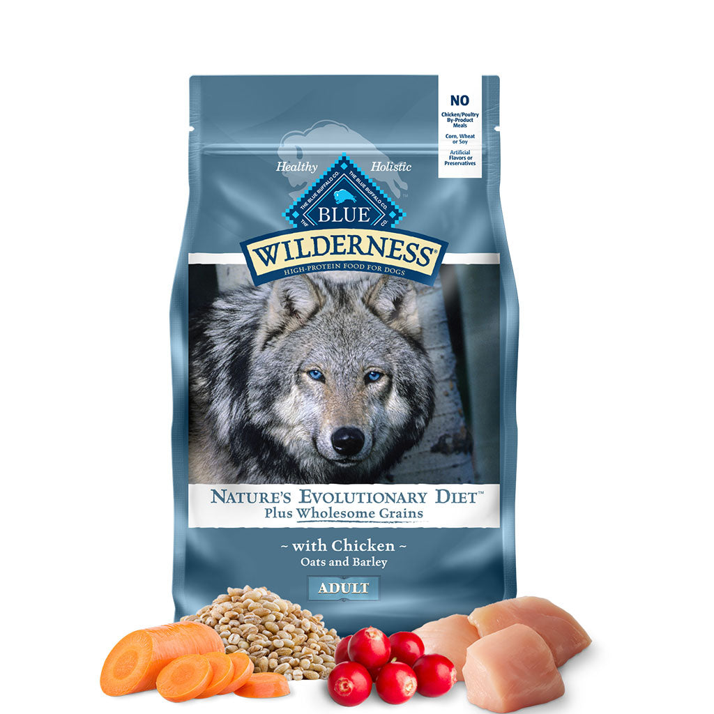 Deboned Chicken, Chicken Meal (source of Glucosamine), Oatmeal, Barley, Dried Chicken, Dried Tomato Pomace, Natural Flavor, Chicken Fat (preserved with Mixed Tocopherols), Flaxseed (source of Omega 3 and Omega 6 Fatty Acids), Peas, Pea Protein, Dried Egg Product, Salt, Dehydrated Alfalfa Meal, Potassium Chloride, L-Threonine, DL-Methionine, Potatoes, Calcium Carbonate, Dried Chicory Root, Pea Fiber, Alfalfa Nutrient Concentrate, Dicalcium Phosphate, Choline Chloride, preserved with Mixed Tocopherols, Sweet Potatoes, Carrots, Zinc Amino Acid Chelate, Zinc Sulfate, Vegetable Juice for color, Ferrous Sulfate, Vitamin E Supplement, Iron Amino Acid Chelate, Blueberries, Cranberries, Barley Grass, Parsley, Turmeric, Dried Kelp, Yucca Schidigera Extract, Niacin (Vitamin B3), Calcium Pantothenate (Vitamin B5), Copper Sulfate, Biotin (Vitamin B7), L-Ascorbyl-2-Polyphosphate (source of Vitamin C), L-Lysine, Vitamin A Supplement, Copper Amino Acid Chelate, Manganese Sulfate, Manganese Amino Acid Chelate, Taurine, Thiamine Mononitrate (Vitamin B1), Riboflavin (Vitamin B2), Vitamin D3 Supplement, Vitamin B12 Supplement, Pyridoxine Hydrochloride (Vitamin B6), Calcium Iodate, Dried Yeast, Dried Enterococcus faecium fermentation product, Dried Lactobacillus acidophilus fermentation product, Dried Aspergillus niger fermentation extract, Dried Trichoderma longibrachiatum fermentation extract, Dried Bacillus subtilis fermentation extract, Folic Acid (Vitamin B9), Sodium Selenite, Oil of Rosemary.