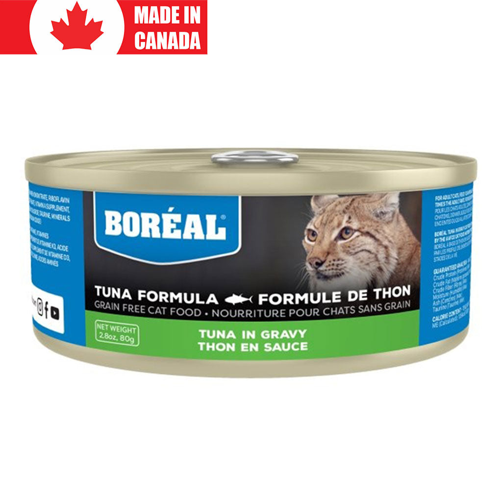 The Red Tuna line is not produced in Canada but in Thailand. It is produced in a facility that also produces food for humans, which is marketed all over the world including Canada. The Manufacturing plant uses processing methods that meet international human-grade food standards and adheres to strict international certified labour laws and fishing practice methods. Boreal is a family owned Canadian company with a focus on improving the health of our pets with low glycemic ingredient diets. While we usually source our products from Canadian suppliers, we are adding these single serving sized cat food diets as a complement to our current Canadian produced lineup.