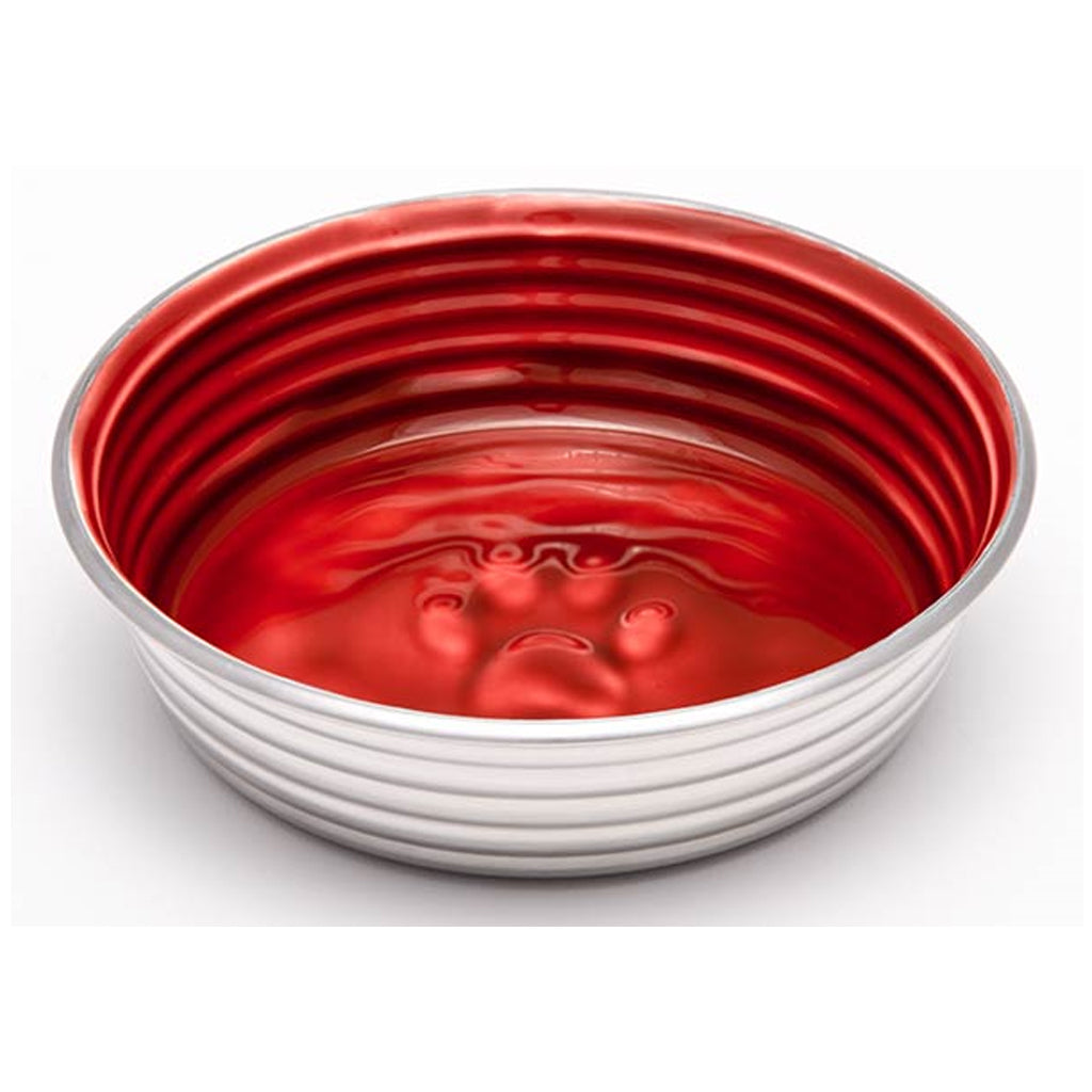 Le Bols are not only gorgeous, they are extremely durable. Created in the style of famous French cookware, these stainless steel bowls have a brightly colored ceramic-like interior. The glazed overstain effect highlights the ribbed walls and embossed paw in the bottom. The integrated rubber base makes them skid and noise-free. And of course, they are top-rack dishwasher safe.