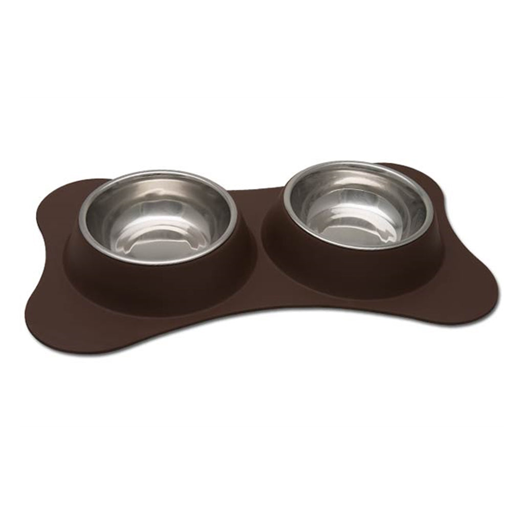 Dolce Flex Diners are an extremely affordable bowl choice. The bone-shaped flexible rubber base conforms to uneven floor surfaces. It protects floors from scratches, prevents slides and spills, and is virtually silent. The removable bowls are made of veterinarian recommended, bacteria resistant, stainless steel. They are easy to clean and dishwasher safe.