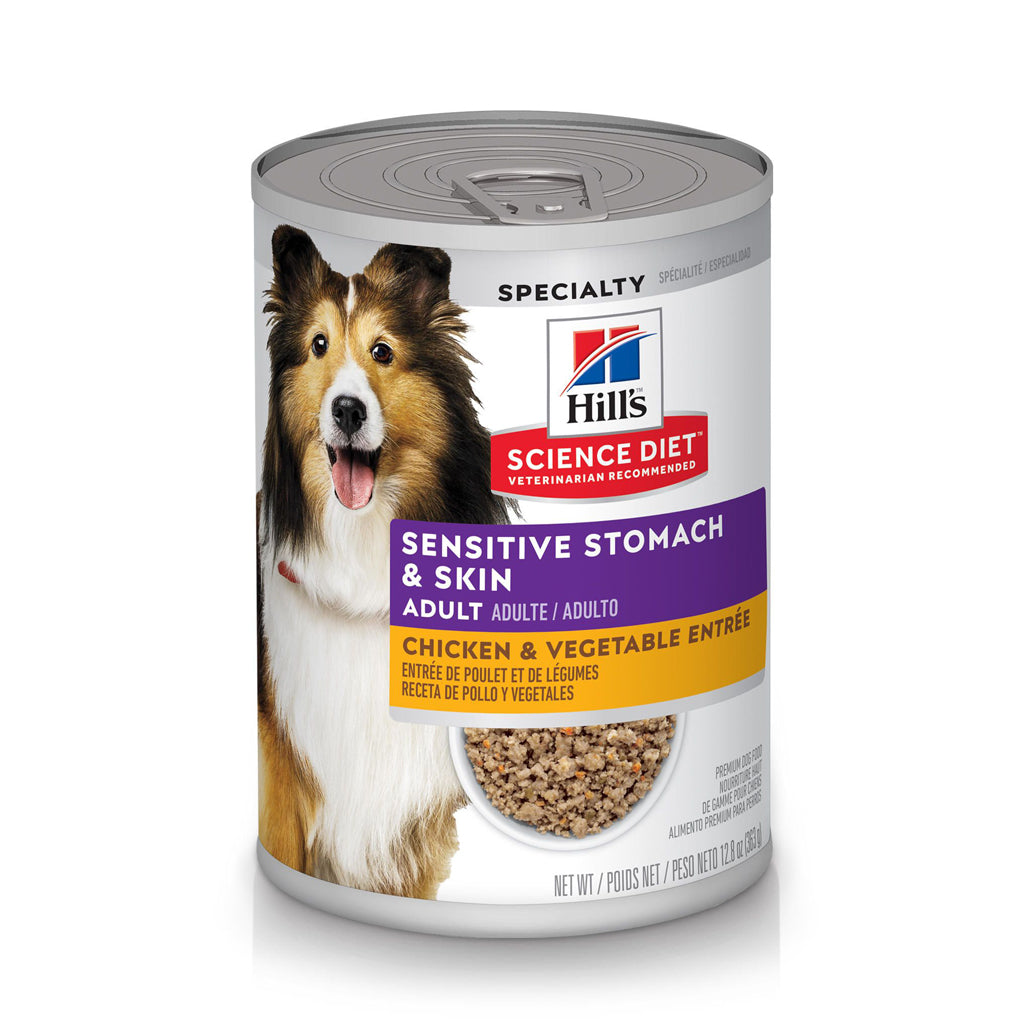 Healthy digestion is a cornerstone of good dog nutrition. That's why Hill's Science Diet Adult Sensitive Stomach & Skin Chicken & Vegetable Entrée uses easy-to-digest ingredients in a grain-free formula to give your grown dog optimal digestive & skin health. Natural fibers help promote easier stool pickup, while omega-6s and vitamin E nourish your adult dog's skin and adds luster to their coat. If you're looking for a dog food without grain, this wet food made with natural ingredients is one to check out!