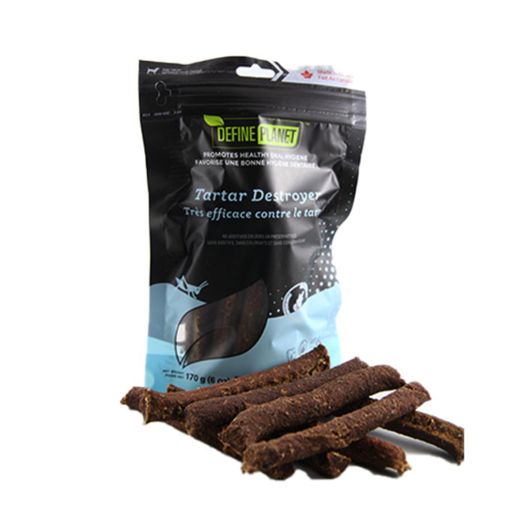 Keep your dog’s teeth clean and their body strong with the DEFINE Planet Tartar Destroyer. This powerful chew promotes dental health by reducing tartar buildup while supporting healthy skin and a shiny coat. Enriched with nutrients for strong bones, it also helps prevent arthritis, making it an all-in-one treat for your pet’s overall health.