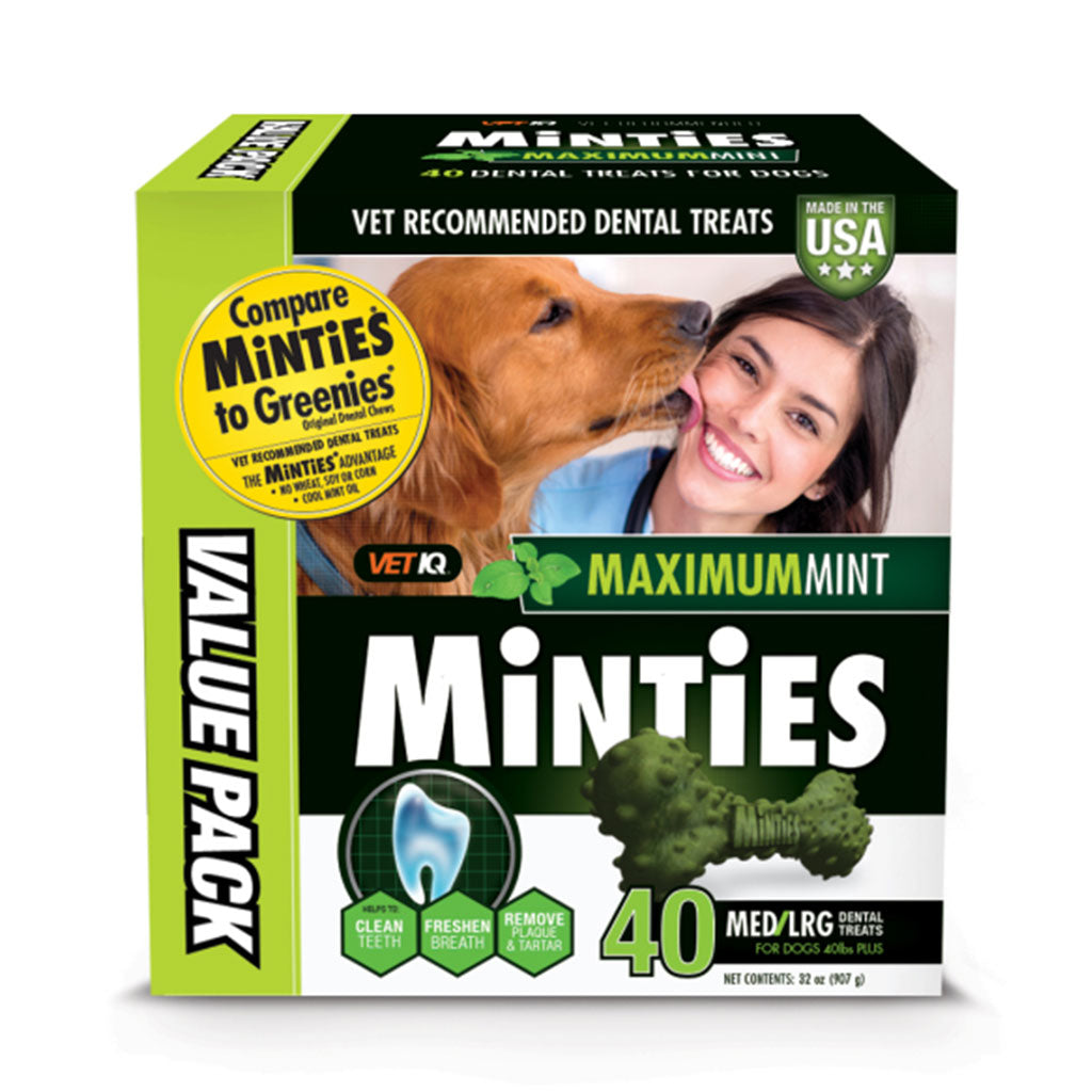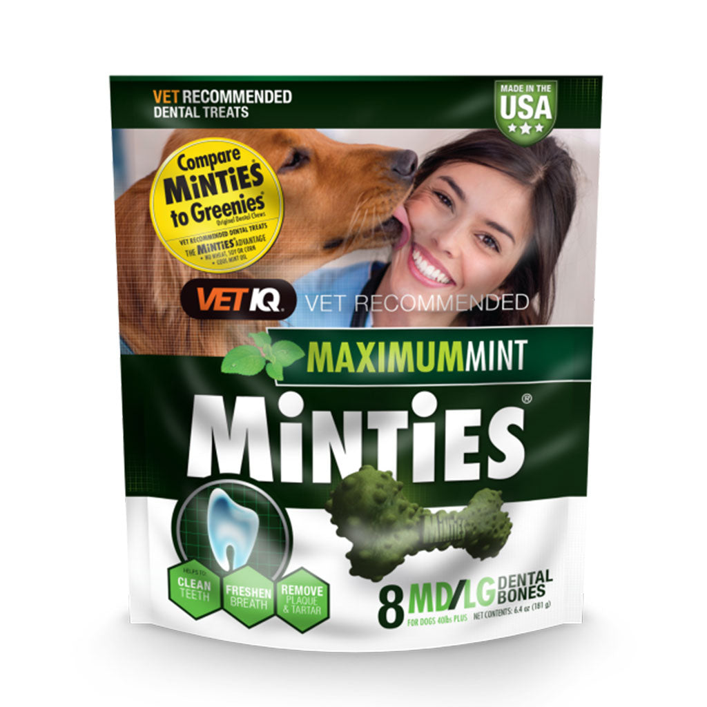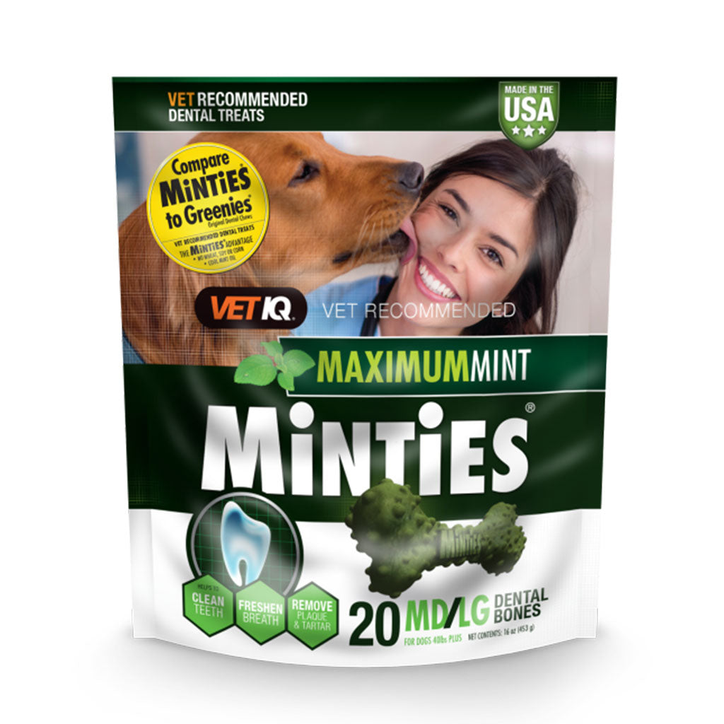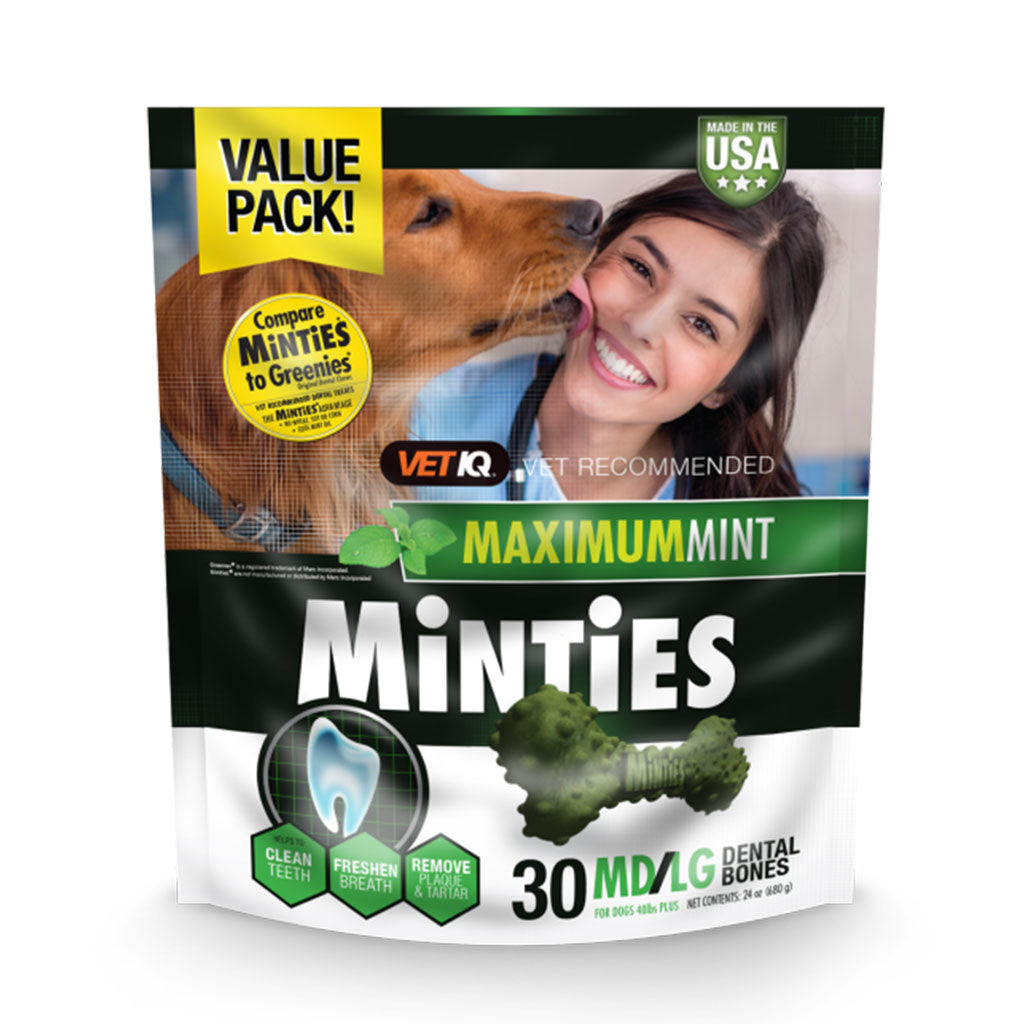 There’s nothing sweeter than an affectionate kiss from your favorite pooch – but unfortunately, bad dog breath can often ruin what should be a sweet and endearing moment. Thankfully, VetIQ is here to help. We offer a variety of pet wellness supplements, including our Minties dental treats which are specially designed to control plaque and tartar in your dog’s mouth,help clean teeth and ultimately freshen your pet’s breath. No matter how bad your dog’s dental health, our Minties dental chews are here to help your favorite furry friend achieve fresher breath!