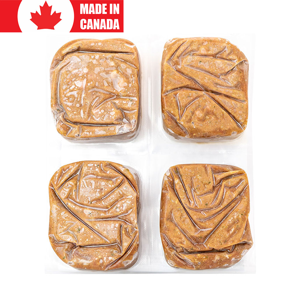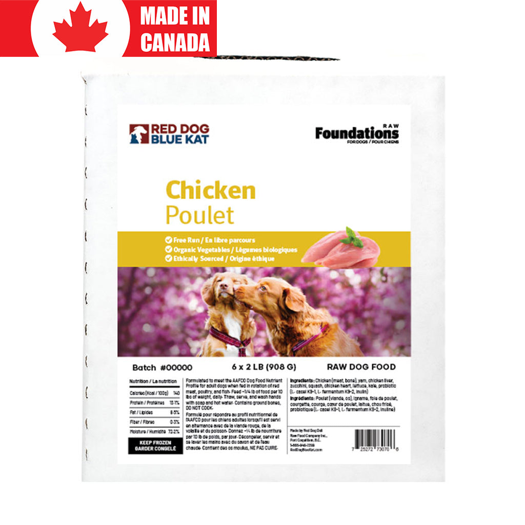 Our chicken meals are made from human-grade, non-medicated whole chickens. We keep the ground bone in this meal for extra calcium and healthy teeth! Chicken meals also contain chicken organs and organic vegetables. It’s a great meal for underweight dogs and puppies. No chicken bi-products here! That’s just fowl! No additives, preservatives or fillers.
