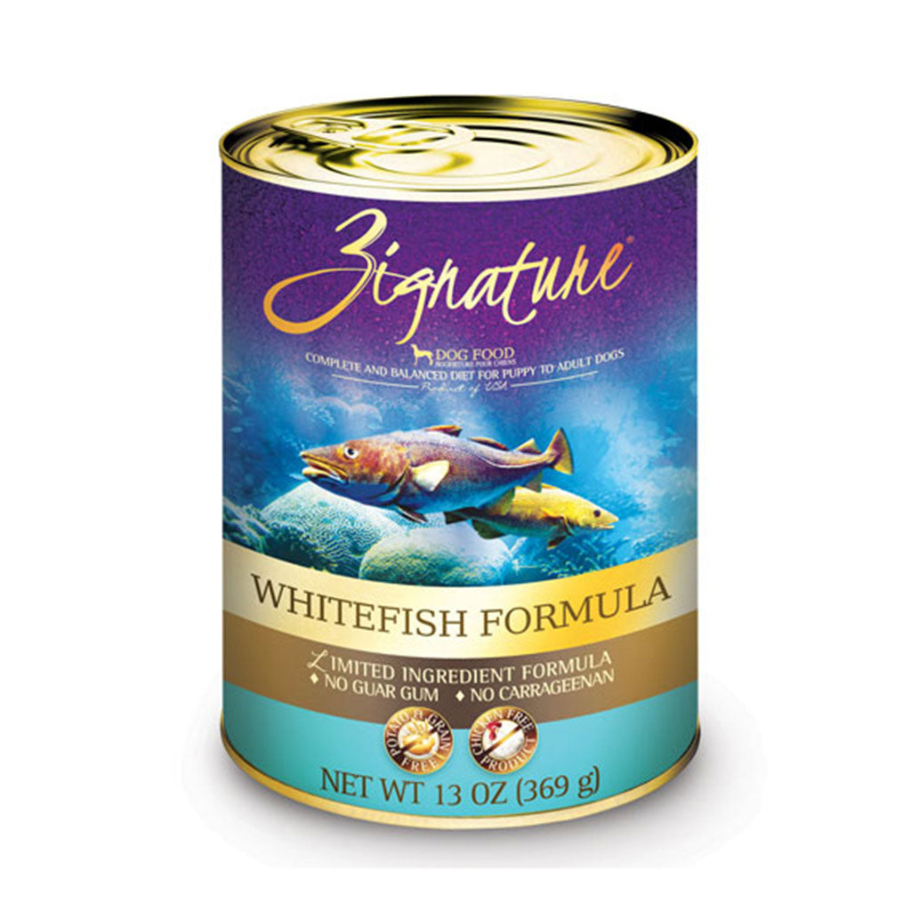 Our Whitefish Formula comes from the fish that are found in the cold waters of the Pacific Northwest and Alaska. Whitefish is not oily like Salmon, but it still contains heart-healthy Omega-3 fatty acids, as well as vitamins and minerals for a healthy, happy dog. Whitefish is a rich source of Niacin, Phosphorous, and Selenium. And our recipe is completely grain-free, providing a hypoallergenic option for those dogs that may have food sensitivities or allergies. Zignature® Whitefish Formula – Learned from Nature, Crafted to Perfection.