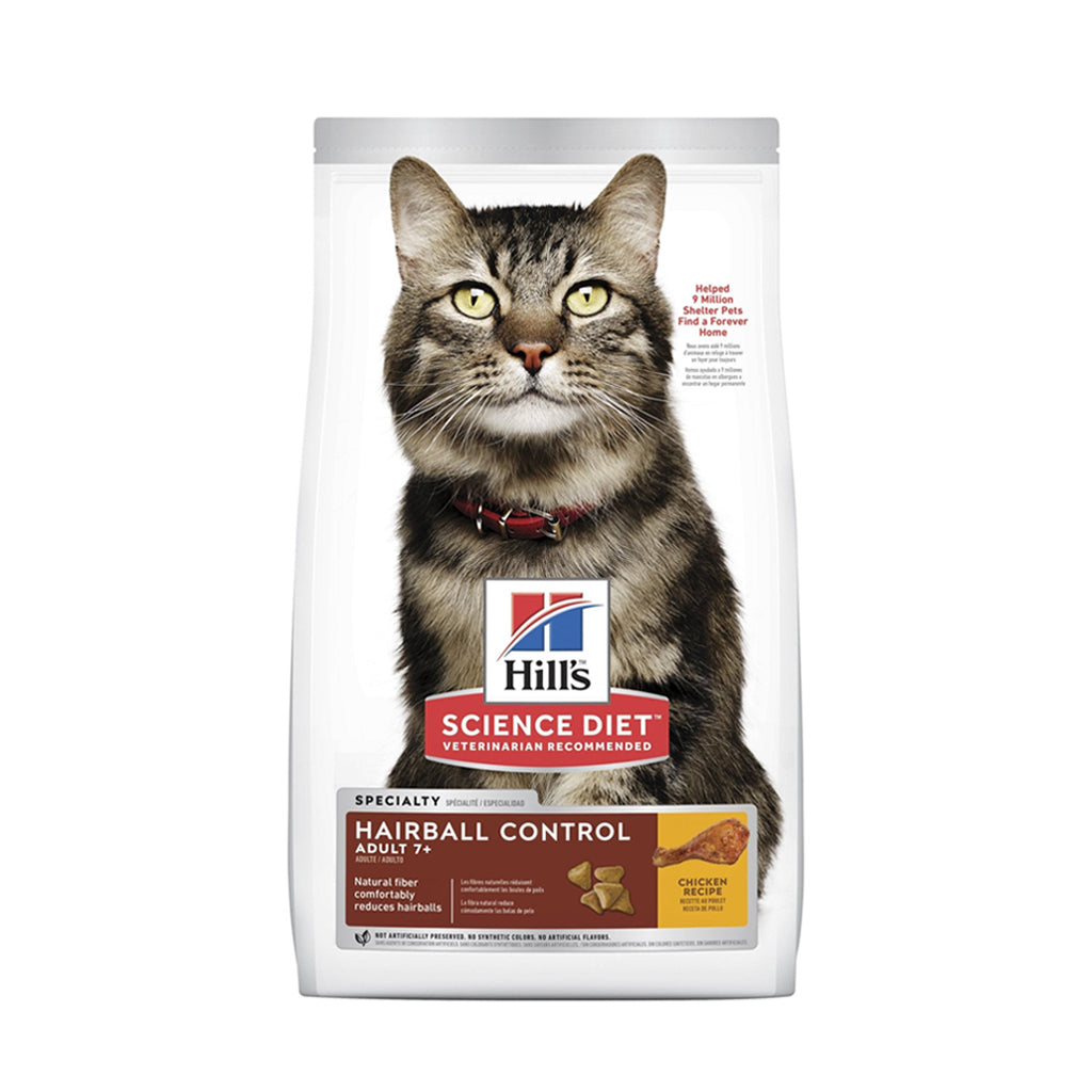 Hairballs are a natural occurrence for cats, but if they're more frequent than you'd like, your senior cat may need a nutritional solution. Hill's Science Diet Hairball Control Adult 7+ dry cat food provides nutrition to help avoid hairball formation for mature cats. Packed with quality protein for lean muscle maintenance, this cat food made with natural ingredients uses omega-3 and omega-6 fatty acids to nourish your cat's skin and fur. To support your older cat's kidneys and heart health, this senior cat food provides essential taurine.