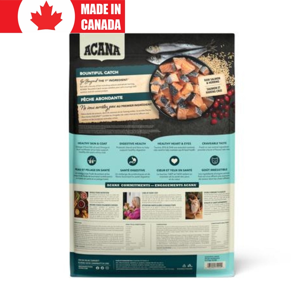 Specially crafted with a bounty of fish, our Acana Bountiful Catch Recipe satisfies your cat with rich fish ingredients. Rich with 65% quality animal ingredients1 including raw salmon and whole herring, Bountiful Catch has the animal protein your cat needs to be their best. This nutrient-dense recipe also helps support key health benefits for your cat, including healthy skin & coat, healthy heart & eyes and digestive health. Nurture your feline with a fish-forward recipe tailored to keep them healthy and happy with Acana Bountiful Catch!