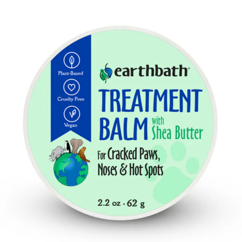 Earthbath® Treatment Balm, made with shea butter and organic aloe vera, soothes and nourishes dry, itchy, or cracked skin. Ideal for dry noses, cracked paws, callouses, skin folds, hot spots, and abrasions. Safe for daily use on dogs and cats over 6 weeks old, it promotes healthy, hydrated skin.