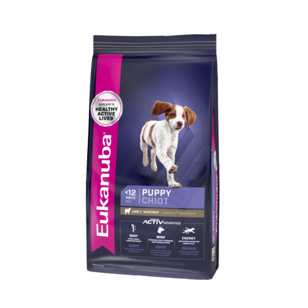 Eukanuba Puppy Lamb 1st Ingredient provides a complete and balanced food for small to medium breed puppies. It helps support muscle and bone development with high quality proteins and optimal calcium and phosphorus levels. Optimized fat and carbohydrate levels fuel growth and play. Eukanuba Puppy provides clinically proven levels of DHA for smarter, more trainable puppies. A natural fiber and prebiotic blend will help support your active puppy.
