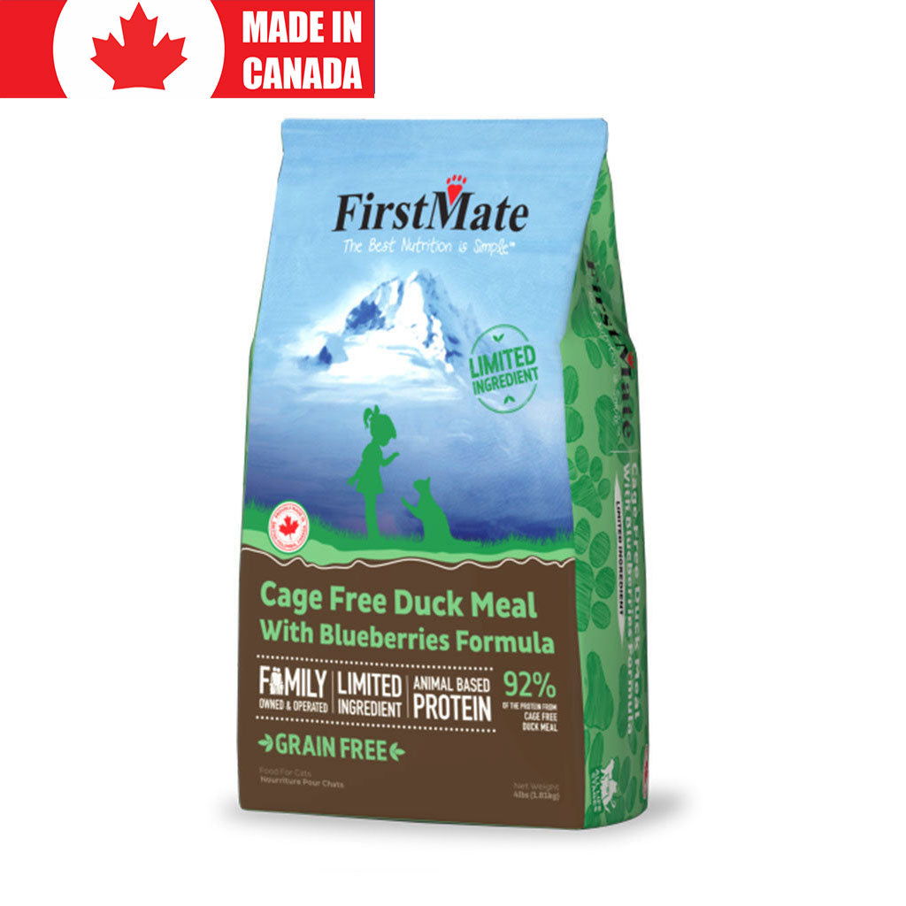 FirstMate Duck Meal With Blueberries Formula is a complete and nutritionally balanced food for cats at all life stages. This Limited Ingredient, pea-free diet is easy on digestion and highly palatable.