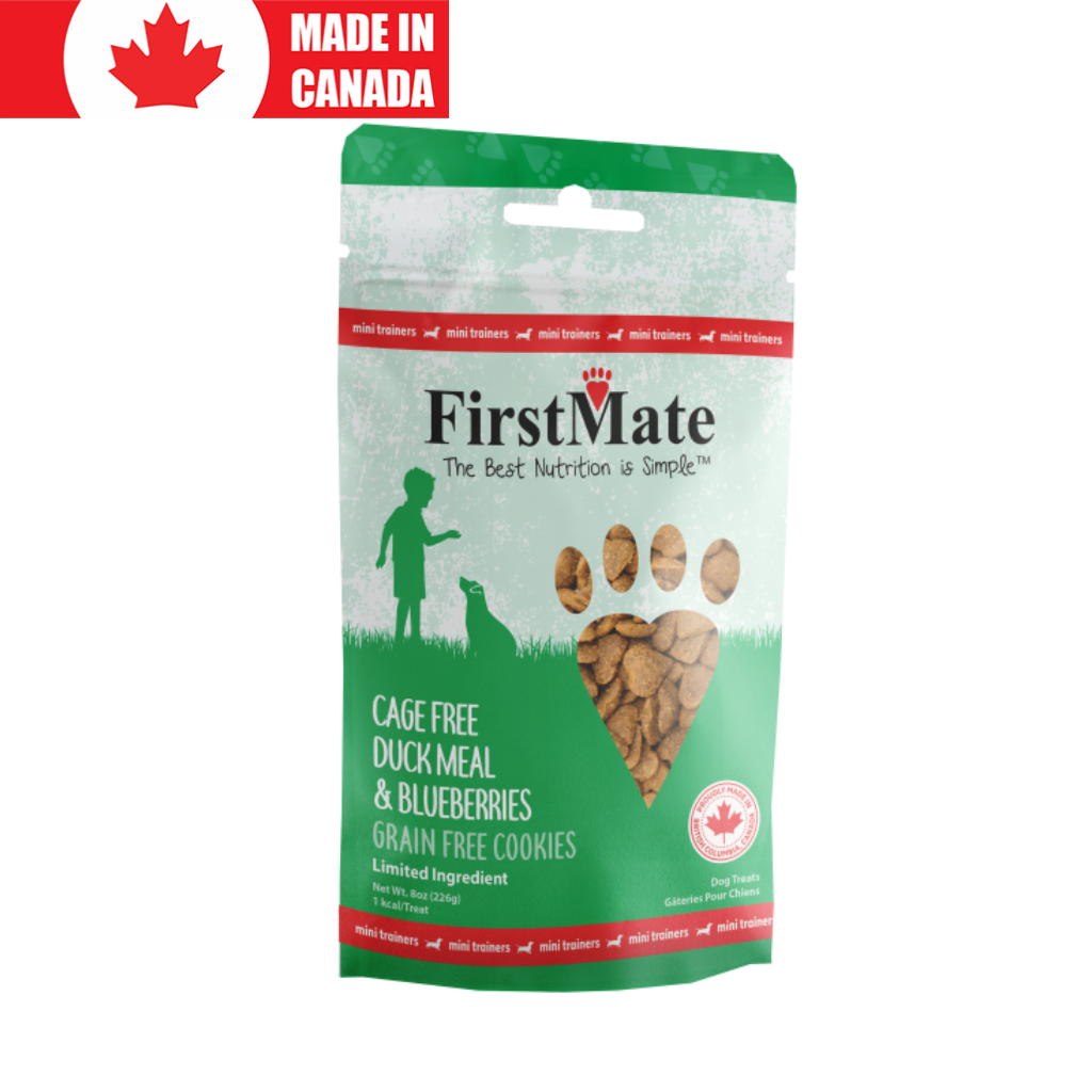 FirstMatess Limited Ingredient Mini Trainers have only 1 kcal per treat. Great for small mouths and long training sessions. These high reward treats are designed to be a meat-based alternative to a typical biscuit. This grain, glycerine, gluten, and pea free formula is ideal for everyday use as a treat or training aid for your dog.