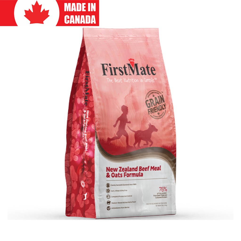 FirstMate's New Zealand Beef & Oats Formula uses pasture-raised New Zealand Beef without added hormones or antibiotics as the single animal protein, and two wholesome grains. Their Grain Friendly category is free of corn, wheat, soy, potato and peas, making it optimum for daily feeding or sensitivities.