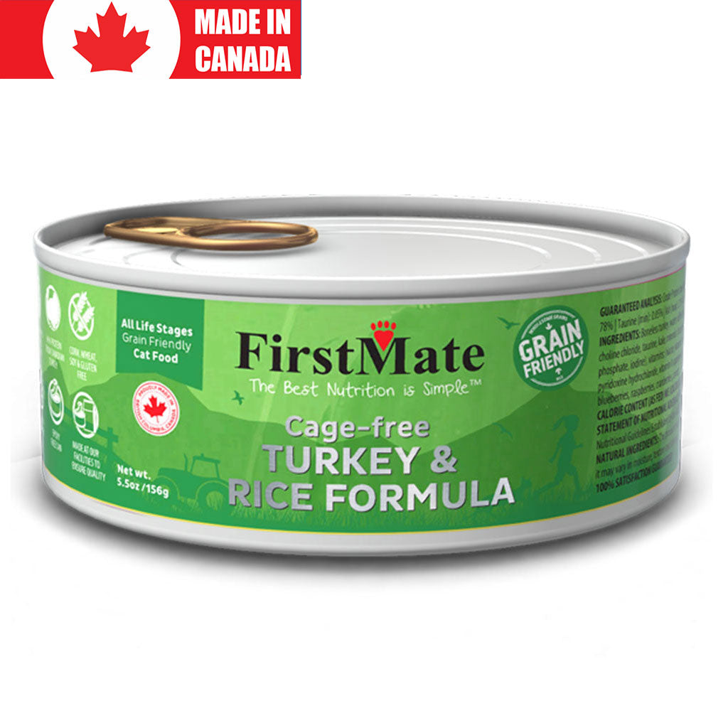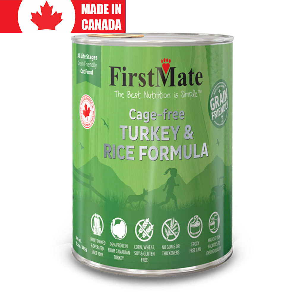 FirstMate’s Grain Friendly™ Cage-free Turkey & Rice formula uses cage-free, Canadian turkey with quality rice. Our Turkey is boneless, food-grade, and without added hormones. This Grain Friendly™ formula is ideal for everyday feeding and can be fed alongside one of our dry options or on its own as a complete and balanced formula.