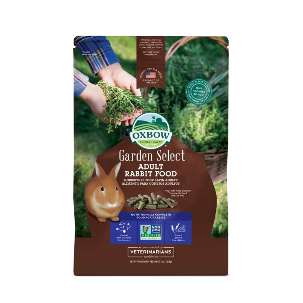 Complete, balanced, and bursting with garden fresh flavor and aroma. Garden Select Adult Rabbit contains all of the complete nutrition you’ve come to expect from Oxbow, with a flavor profile hand-picked from Mother Nature’s kitchen. Select garden ingredients such as whole yellow pea, tomato, rosemary, and thyme give Garden Select its delectable, garden fresh flavor while a blend of three varieties of hand-selected hay provides the fiber your pet needs while encouraging enrichment and variety. All Garden Select varieties are Project Non-GMO certified.