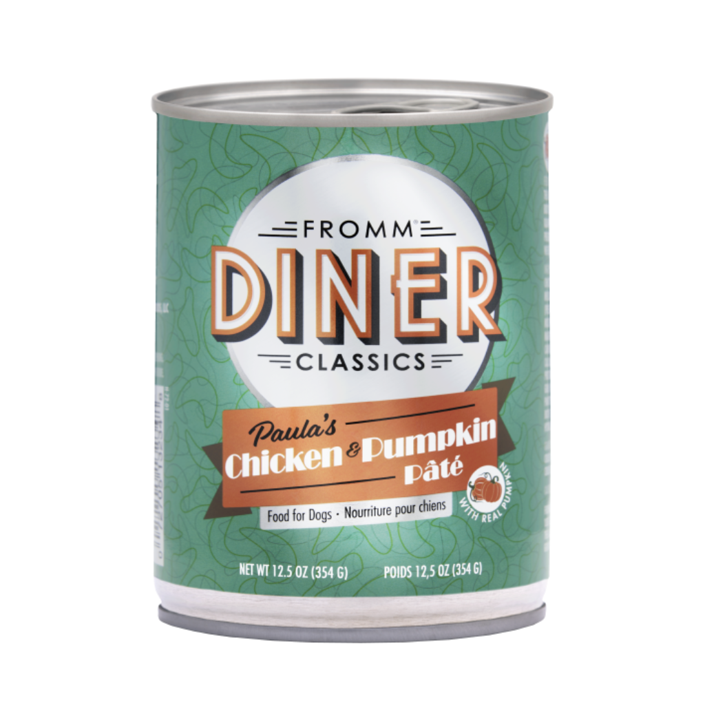 Order up! Fromm's diner-inspired recipes are sure to please. Paula's Chicken & Pumpkin Paté includes finely minced chicken cooked in chicken broth with pumpkin.