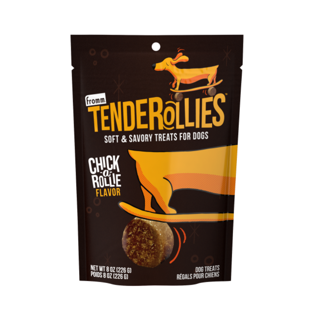 Fromm Tenderollies Chick-a-Rollie flavour are deliciously tender little rolls of soft, savory chicken goodness that make dogs jump, dance, flip, and anything else they can think of to get attention and get a soft, tasty treat.