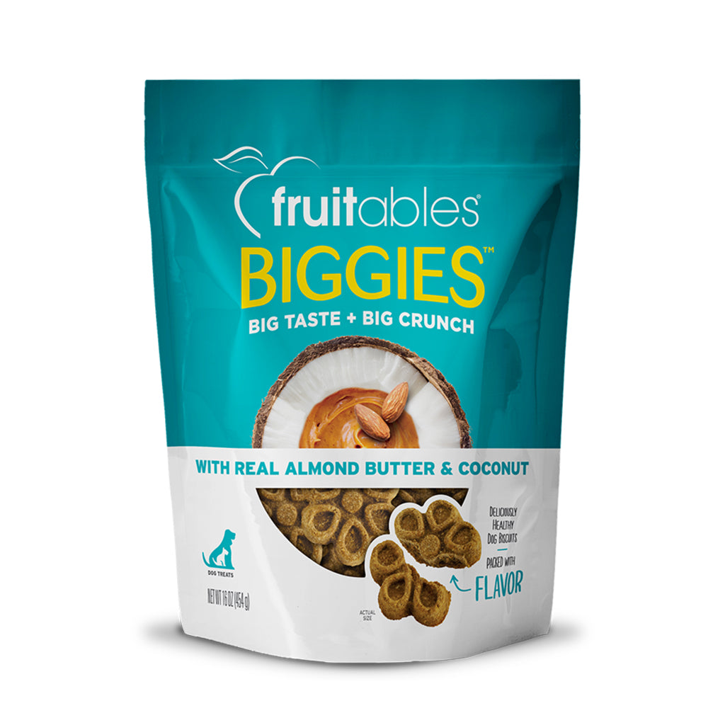 Your dog will agree that bigger is definitely better when they take a bite of Fruitables Biggies. Packed with ingredients you can smell, our one-of-a-kind flavor mash-ups offer a bigger, bolder taste and a crispier crunch that'll have tails wagging for more.
