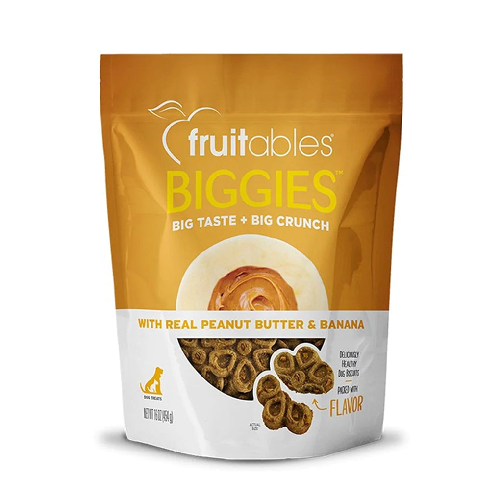 Your dog will agree that bigger is definitely better when they take a bite of Fruitables Biggies. Packed with ingredients you can smell, our one-of-a-kind flavor mash-ups offer a bigger, bolder taste and a crispier crunch that'll have tails wagging for more.