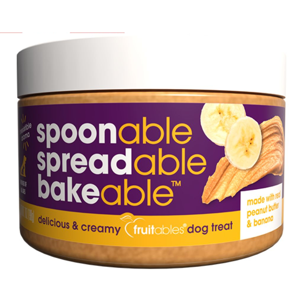 Treat your dog's tastebuds with Fruitables Peanut Butter & Banana Spread, a smooth, 100% natural, human-grade delight. Perfect for spreading on treats, feeding by spoon, baking into cookies, or freezing into 'ice cream.' The possibilities are endless and the flavors are amazing! Dogs go crazy for this nutritious and versatile treat. Give your dog a delicious treat today!