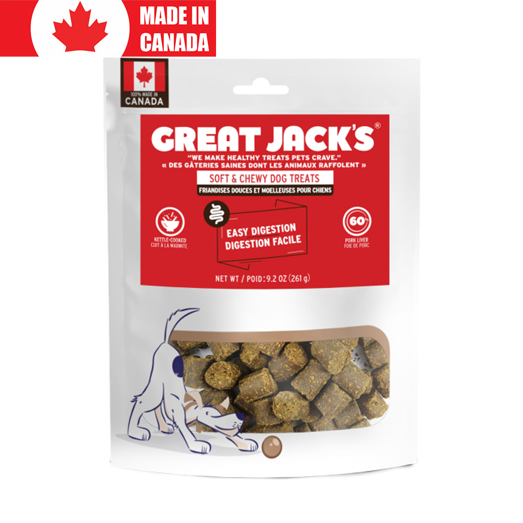 Great Jack's Functional Treats for dogs contain 60% pork liver and have a protein content over 20%. Their Easy Digestion formula contains pumpkin, oligomeric isomaltose, yeast cell wall, and other active ingredients to reduce digestive burden and promote a healthy digestive tract.