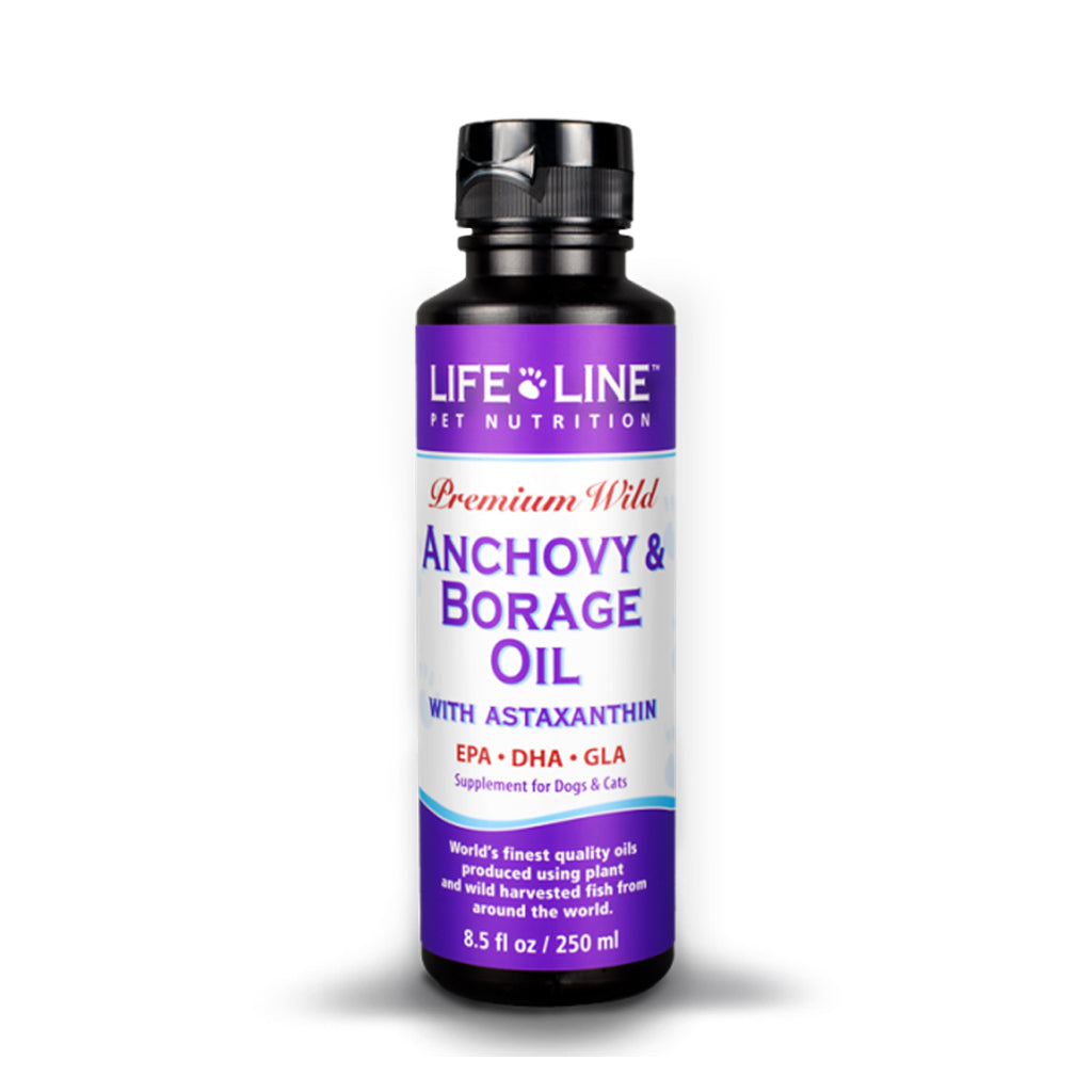 Does your dog have sensitive skin that is prone to rashes or breakouts? Our Anchovy + Borage Oil contains ingredients that are key to keeping your pets coat and skin in top condition. Your dogs or cats coat should molt twice per year and their skin should be free of crusting, itching and spots. Most skin issues in dogs can be attributed to allergens and can lead to skin infections.