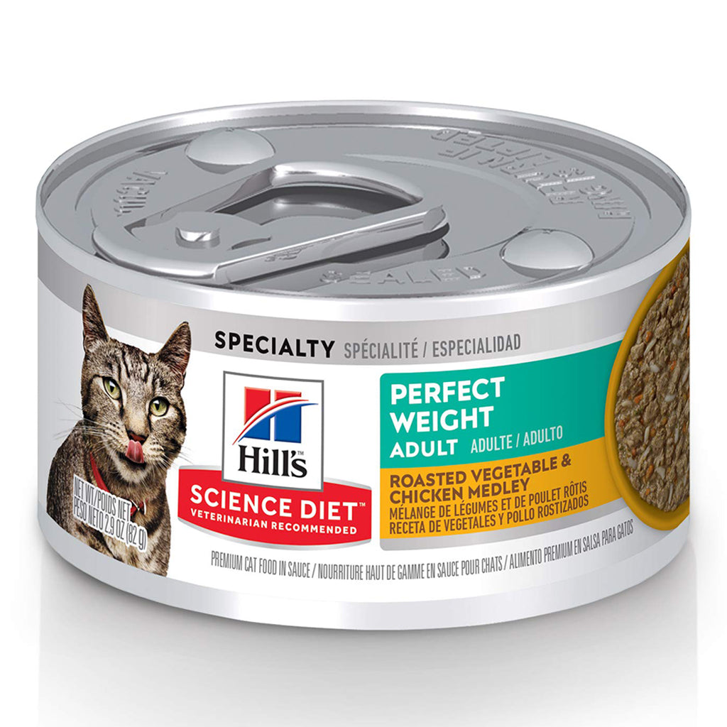 If you're looking for a breakthrough weight management cat food your pet will love, you'll want to try Hill's Science Diet Adult Perfect Weight Roasted Vegetable & Chicken Medley. Formulated for long-lasting weight support, this adult cat food made with natural ingredients has been clinically proven to deliver results. Over 70% of cats tested with this premium cat food lost weight within 10 weeks. High-quality protein helps your grown cat maintain lean muscle, while the rich chicken flavor in a mouth-watering sauce makes this an adult cat food your pet is sure to love and benefit from.