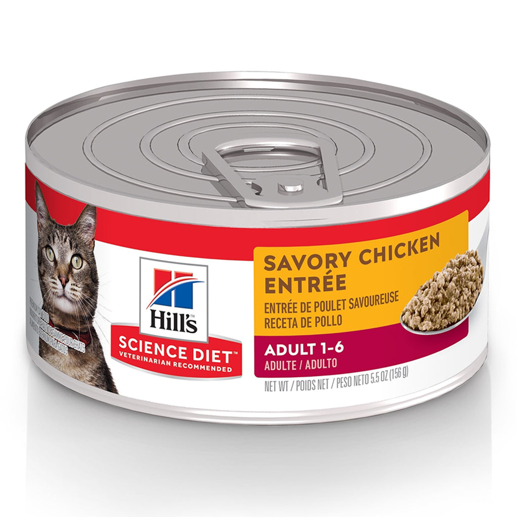 Made with purposeful ingredients for a flavorful, nutritious meal, Hill's Science Diet Adult Savory Chicken Entrée wet food uses high-quality ingredients to ensure availability of key nutrients and proteins for your adult cat. Formulated for the developmental needs of grown felines, this cat food made with natural ingredients provides high-quality protein for muscle maintenance. Give your cat the perfect balance of taste and nutrition with this smooth canned food packed with antioxidants plus vitamins C and E.