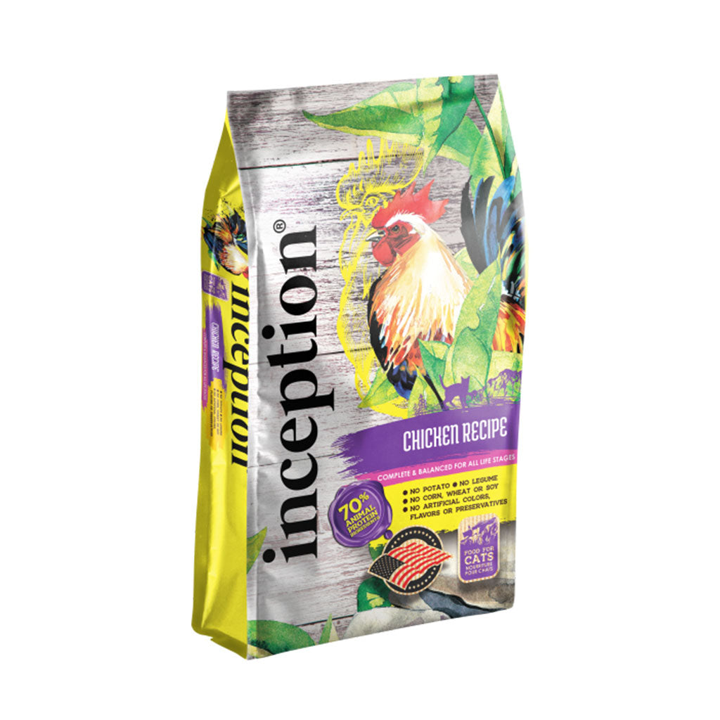 The Inception® chicken recipe is created with animal protein first to meet your feline companions needs. It contains no potatoes, legumes, corn, wheat, or soy.