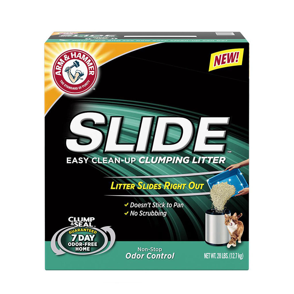 Now, the litter you trust to eliminate odors also eliminates the stuck-on mess in the litter box! Arm & Hammer's revolutionary formula slides right out, so there's no scraping or scrubbing.