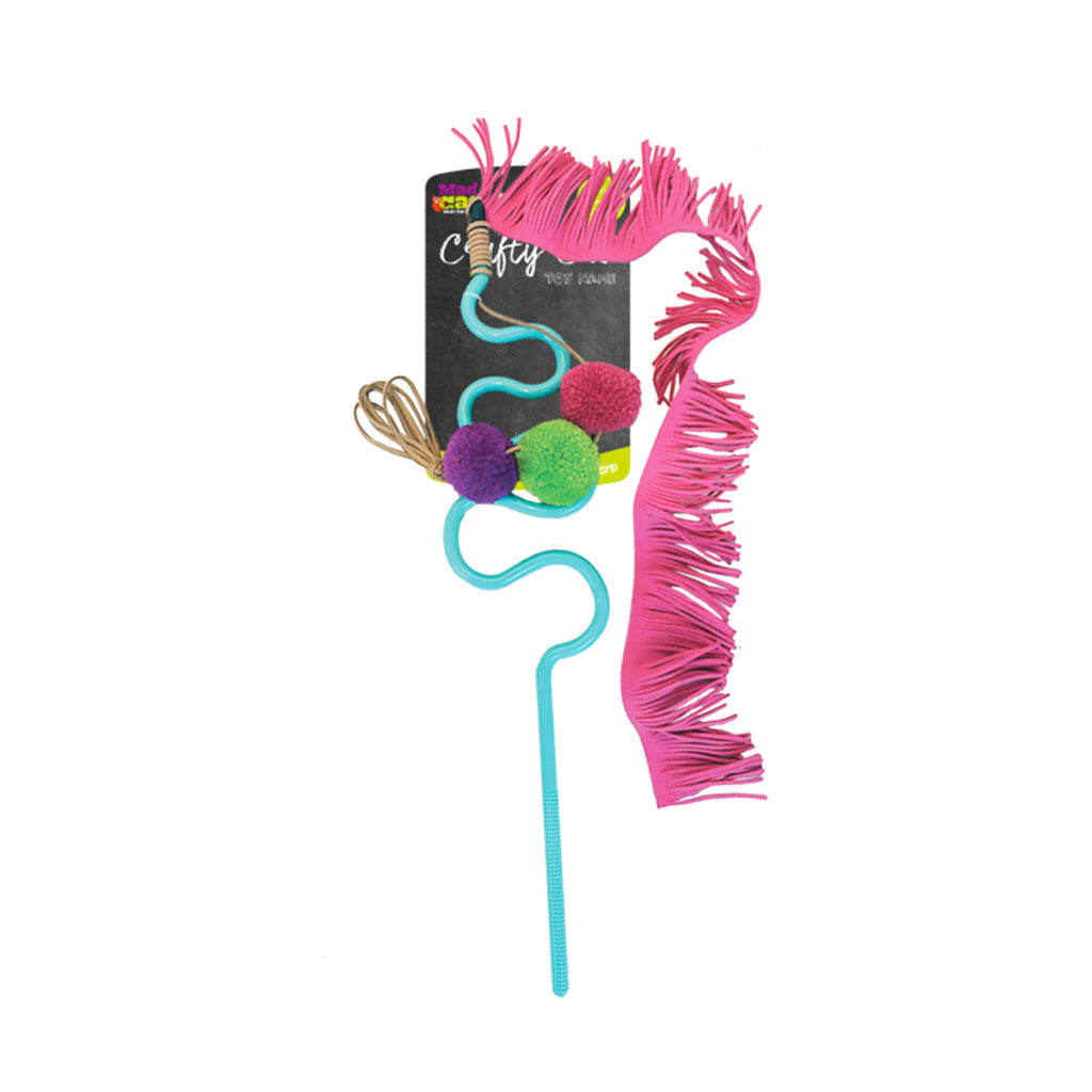 Your cat will be chasing her dreams with the Mad Cat Frisky Fringe Wand! This super silly wand measures about 16" and provides hours of fun for your favourite feline! You can dangle and wiggle this irresistible toy while your cat tries to catch her prize. Multiple textures provide added fun!