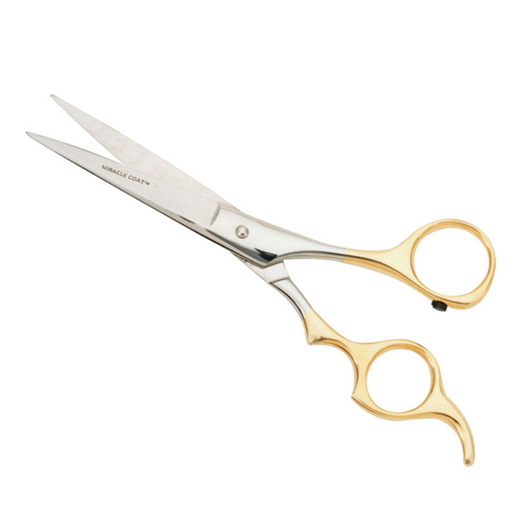 Miracle Coat Grooming Shears are 6 ½” shears that feature golden dipped handles. Included a protective sheath, the Grooming Shears are an all-purpose shear that provides a balanced cutting action for any type of coat.