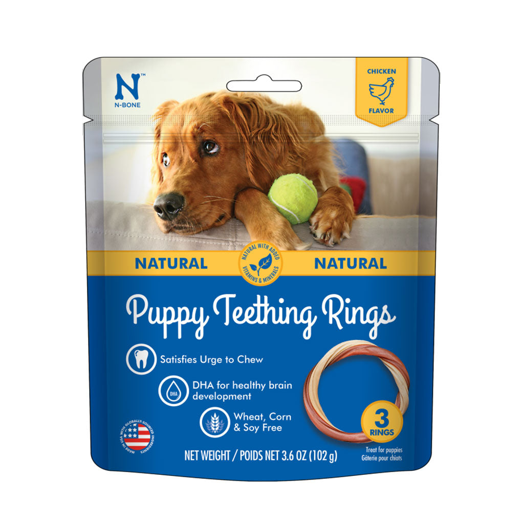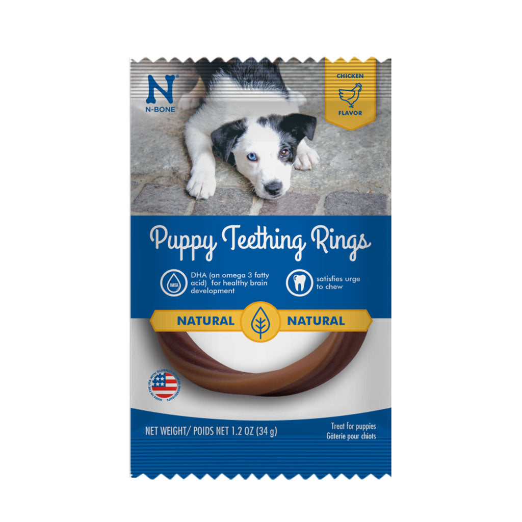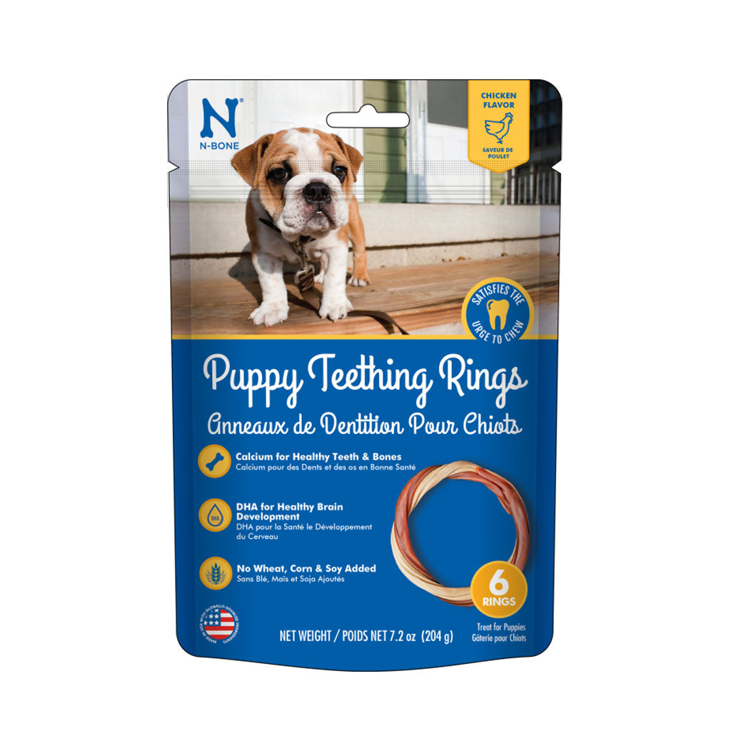 N-Bone® Puppy Teething Rings are easy for floppy puppy paws to hold onto and provide a soothing and appropriate outlet for chewing. Formulated with DHA and calcium to support your puppy’s unique nutritional needs, our delicious chicken flavored rings are pliable and won’t damage immature teeth. Try N-Bone® Puppy Teething rings today!