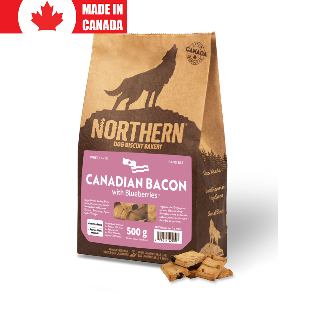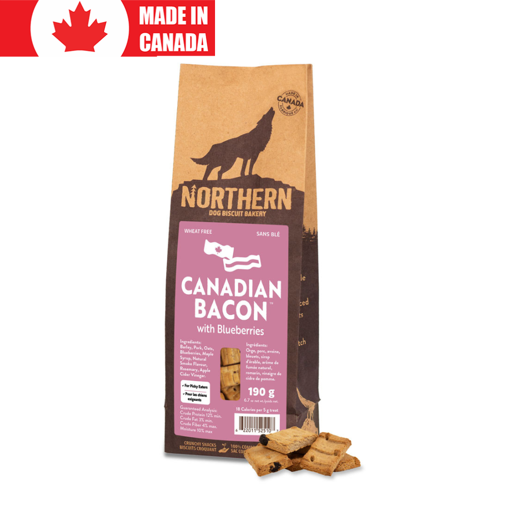 Who doesn't like bacon and maple syrup?!? This truly Canadian recipe includes fresh, food-grade pork from Ontario and Quebec. We mix in North American whole blueberries and pure Canadian maple syrup et voila! A gift from Canada to the World!! Slowly baked with whole barley and rolled oats grown and milled locally