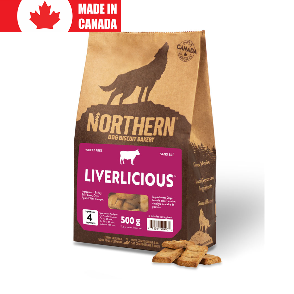 We use fresh, local, food-grade Canadian liver in this simple recipe, with only four ingredients. Slowly baked with whole barley grown and milled locally.