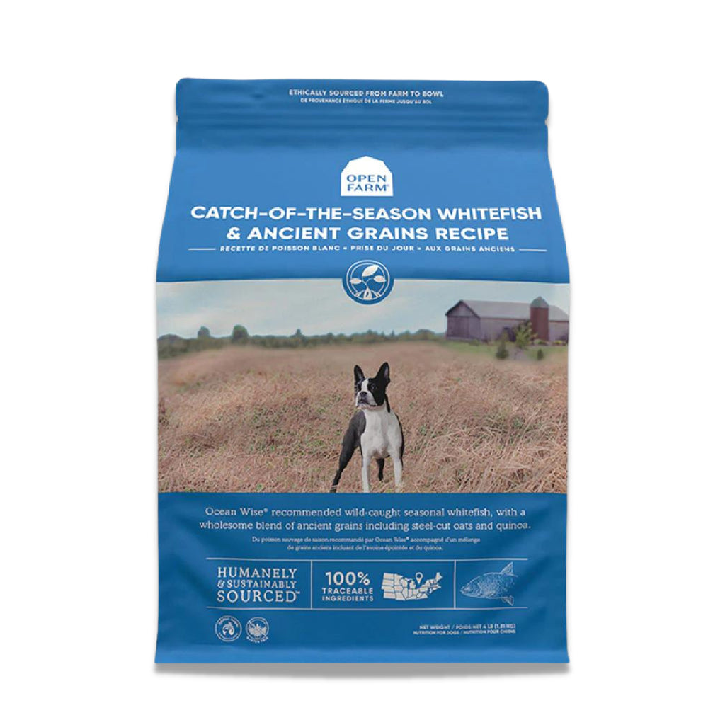 This tasty high protein, gluten-free recipe is loaded with wild-caught seasonal whitefish that are Ocean Wise® approved and free of antibiotics and added growth hormones, wholesome grains like steel-cut oats, quinoa, brown rice, and chia seeds, and superfoods like coconut oil, pumpkin and turmeric. It’s dry good-for-your-pup food made without peas, potatoes and legumes.