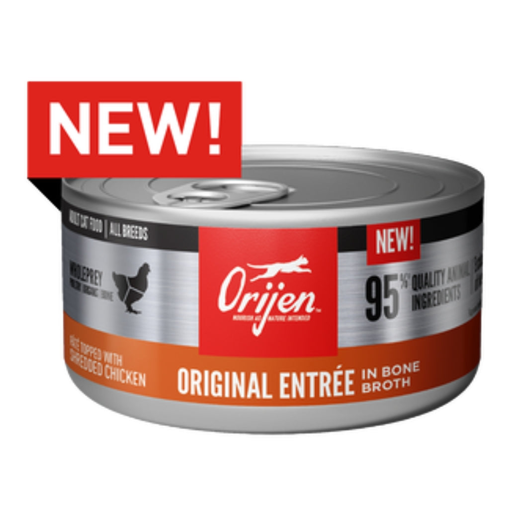 Orijen® Wet Cat Food is a super premium paté packed with WholePrey animal ingredients. Orijen® Original Entrée includes raw WholePrey ingredients like poultry, organs and bone that provide the protein, nutrients and minerals your cat needs to be their best. At least the first 5 ingredients in every Orijen diet are fresh or raw animal ingredients, and the first 8 ingredients in this wet cat food diet are raw poultry and fish ingredients. Packed with 95%1 animal ingredients and no peas, lentils, legumes, carrageenan or gums, Orijen Wet Cat Food provides the nourishment your cat needs to thrive.