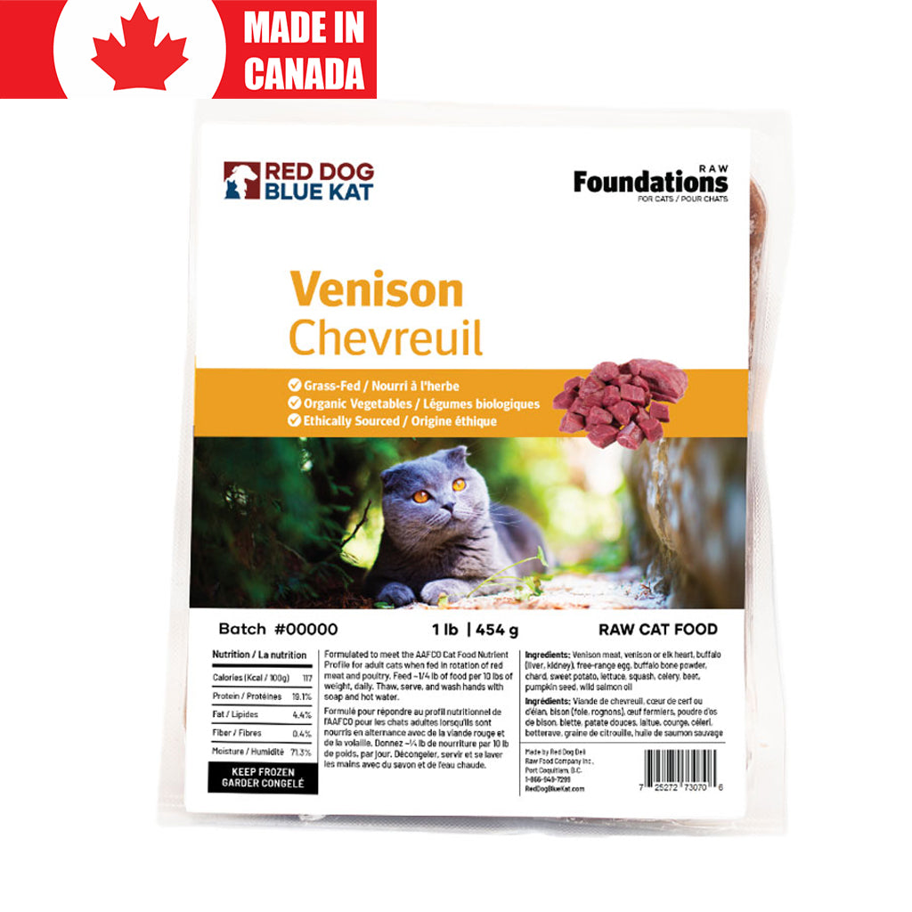 Our venison meals are made from human grade, non-medicated venison meat, buffalo organs and organic vegetables. It’s a great meal for cats with allergies and food sensitivities. Or simply add it to your rotation for a new game plan. No additives, preservatives or fillers.