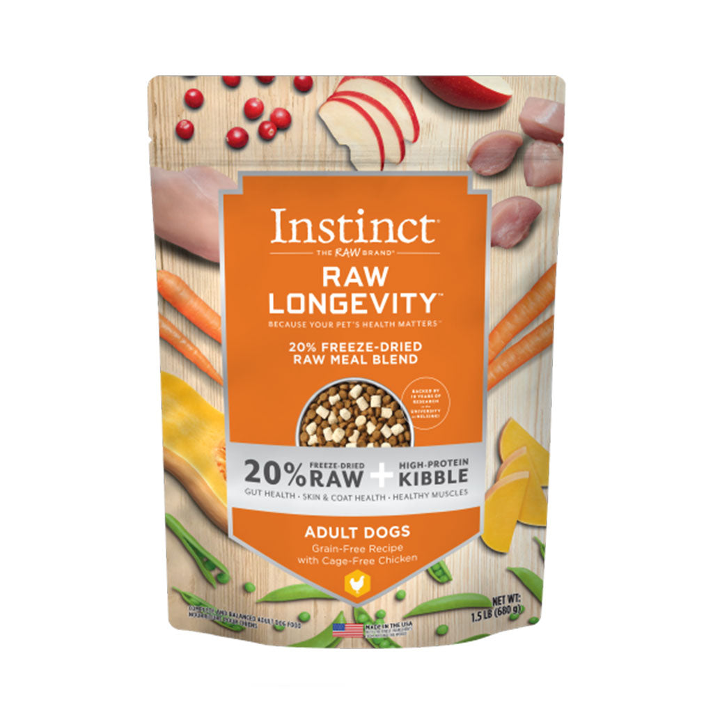 Chicken, Chicken Meal, Peas, Chicken Fat (preserved with Mixed Tocopherols), Tapioca, Freeze Dried Beef, Freeze Dried Beef Kidney, Freeze Dried Beef Spleen, Freeze Dried Beef Liver, Herring Meal, Menhaden Fish Meal, Natural Flavor, Freeze Dried Beef Heart, Dried Tomato Pomace, Pumpkinseeds, Salt, Vitamins (Vitamin E Supplement, Vitamin A Supplement, LtoAscorbylto2toPolyphosphate, Niacin Supplement, Thiamine Mononitrate, dtoCalcium Pantothenate, Riboflavin Supplement, Pyridoxine Hydrochloride, Vitamin B12 Supplement, Folic Acid, Vitamin D3 Supplement, Biotin), Apples, Carrots, Tricalcium Phosphate, Montmorillonite Clay, Cranberries, Potassium Chloride, Minerals (Zinc Proteinate, Iron Proteinate, Copper Proteinate, Manganese Proteinate, Sodium Selenite, Ethylenediamine Dihydriodide), Butternut Squash, Salmon Oil, Taurine, Cod Liver Oil, Dried Kelp, Yeast Culture, Choline Chloride, Freeze Dried Chicken, Freeze Dried Chicken Liver, Freeze Dried Chicken Heart, Dried Bacillus coagulans Fermentation Product, Rosemary Extract.