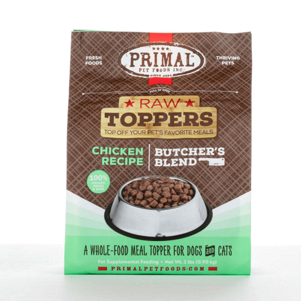 To serve, simply remove bag from your freezer, pour the appropriate amount over your pet's regular food, and allow to thaw. Only serve primal raw foods when completely thawed�frozen foods can be difficult for animals to digest. Never microwave any pet food.