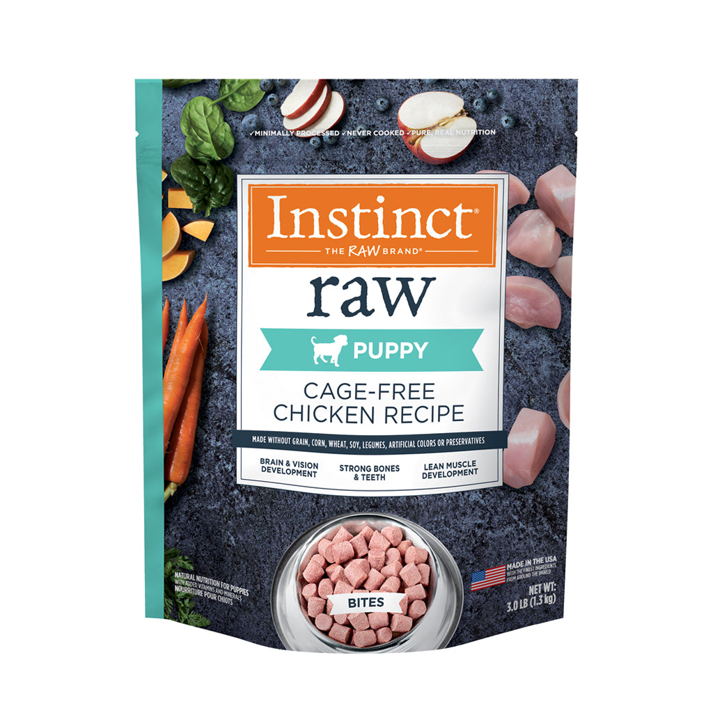 Made for growing puppies, Instinct Raw is protein packed with meat and organs and non-GMO vegetables, fruits + vitamins & minerals. It also includes natural DHA for brain and eye development plus calcium & phosphorus for strong bones and teethInstinct uses whole-food ingredients like cage-free chicken and never includes grain, corn, wheat, soy, artificial colors or preservatives. Instinct believes in the power of raw nutrition because they know the good it can do. Unlock your puppy's potential to thrive with Instinct Raw. Made in the USA with the finest ingredients from around the world.