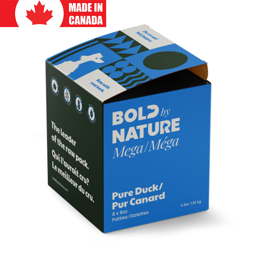Our Bold By Nature Mega Duck patties is full of ground duck meat, ground bone, organ meats, and fresh veggies. It fits the bill for dogs with allergies.
