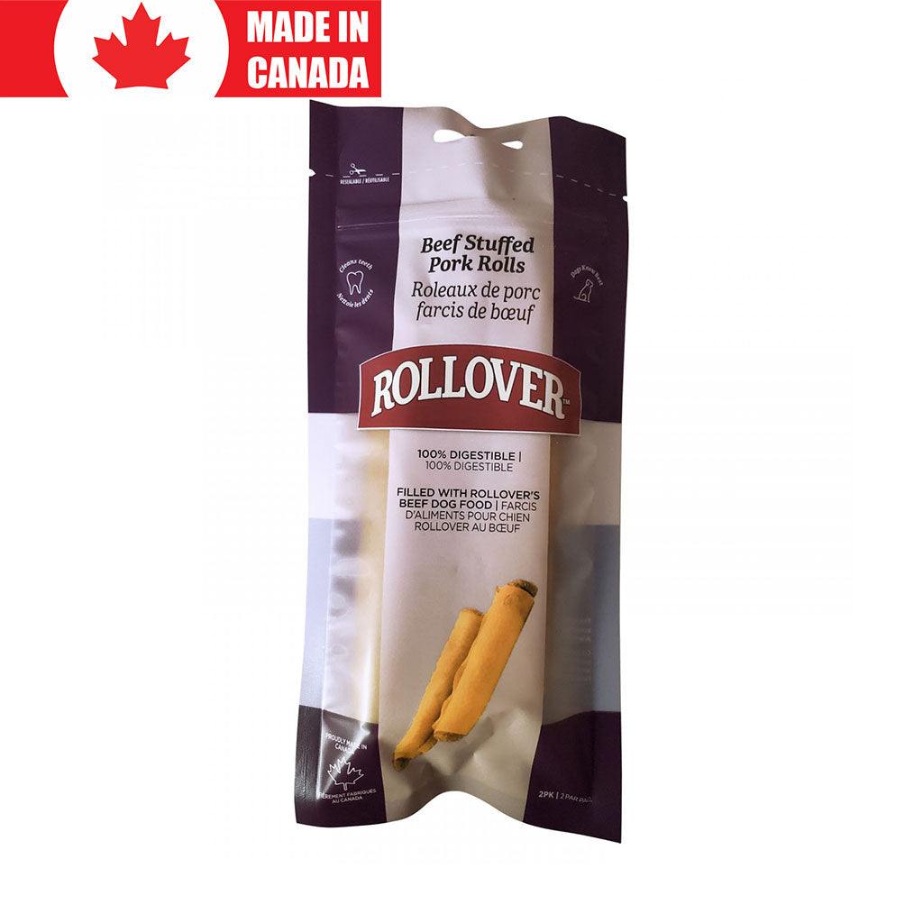 We roll 100% digestible, low fat porkhide, fill it with our delicious, natural dog food and then carefully bake it to be a scrumptious and nutritious chew treat. Porkhide is a much healthier alternative to traditional beef rawhide and with the added bonus of a filling of our premium Beef dog food, Super Premium Wheat-Free Salmon dog food, premium Chicken dog food or our NEW Grain Free Whitefish & Maple filling, these treats are sure to be a hit with your dog!